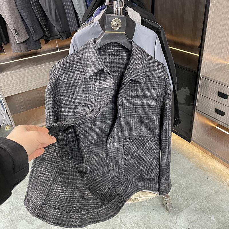 撤柜 余单!男士双面羊毛呢大衣秋冬季羊绒格子外套青年翻领男装
