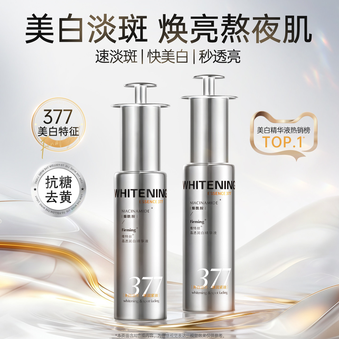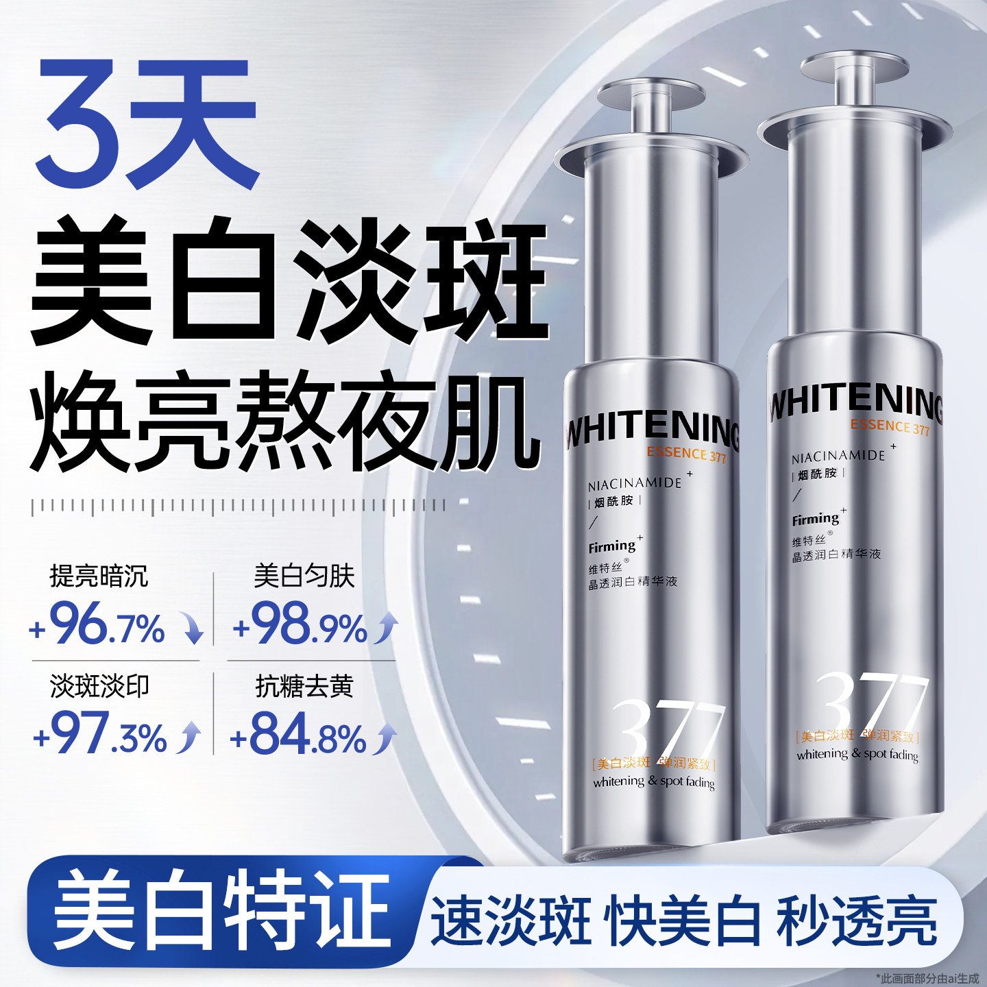 377美白精华液烟酰胺VC提亮去黄改善暗沉肤色淡斑抗糖抗氧化官方