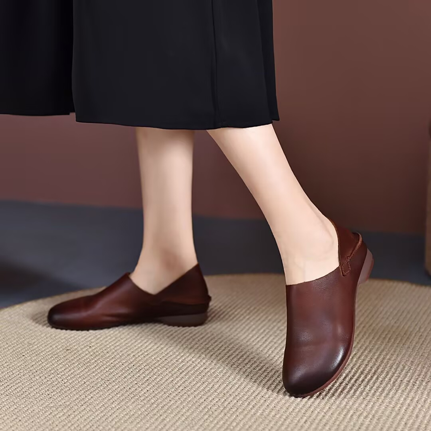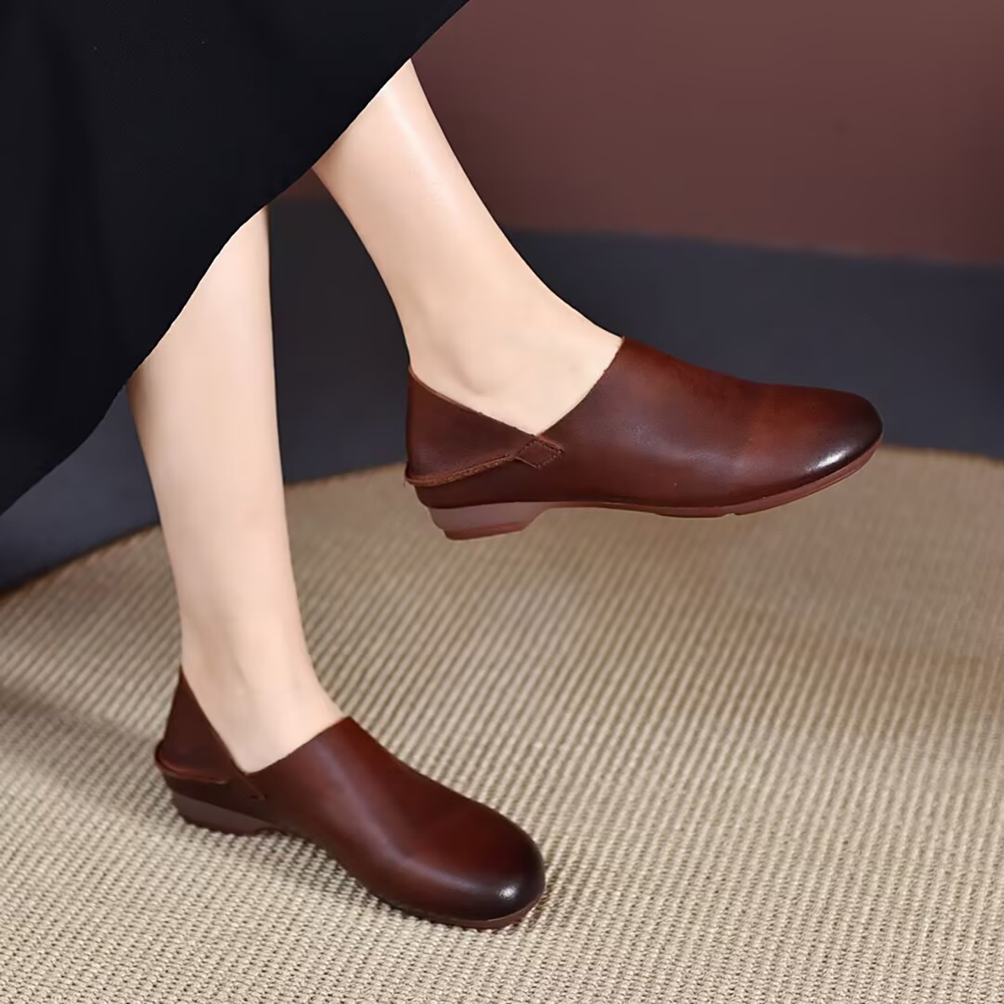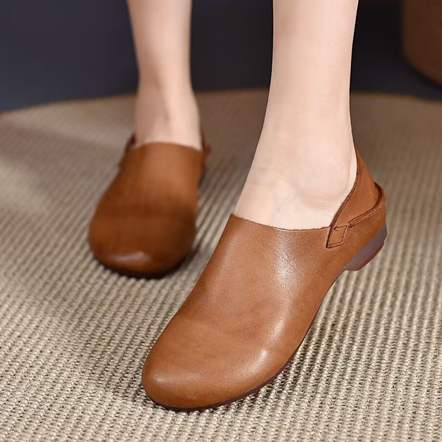 复古真皮手工单鞋女2025春秋新款平跟软底舒适妈妈鞋百搭森系女鞋
