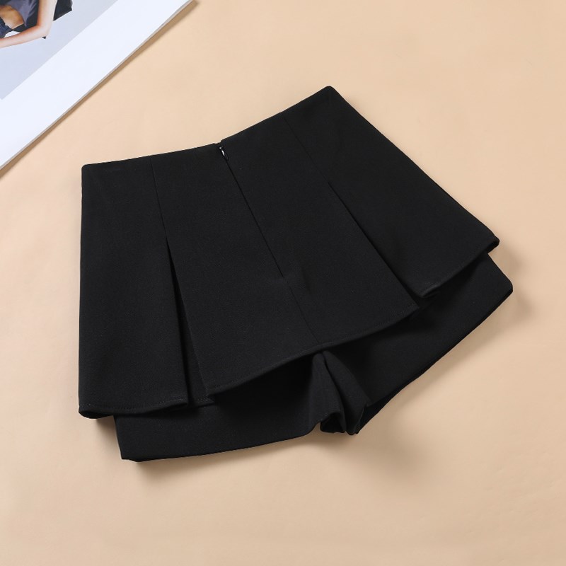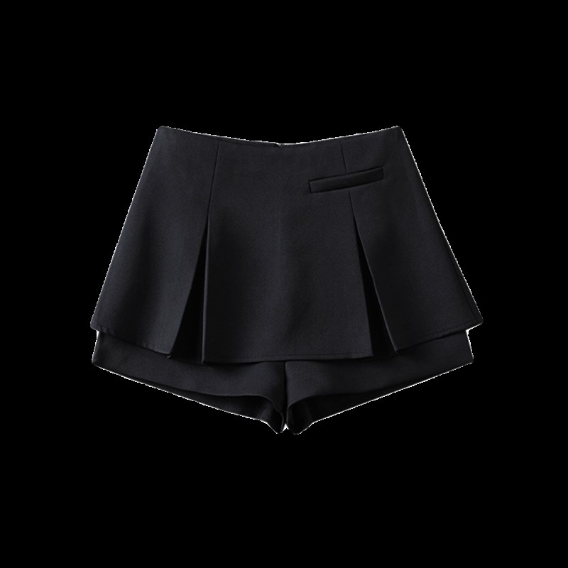黑色百褶西装半身裙女2025春秋季新款高腰小个子假两件a字短裙裤