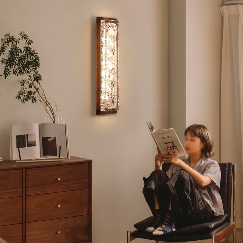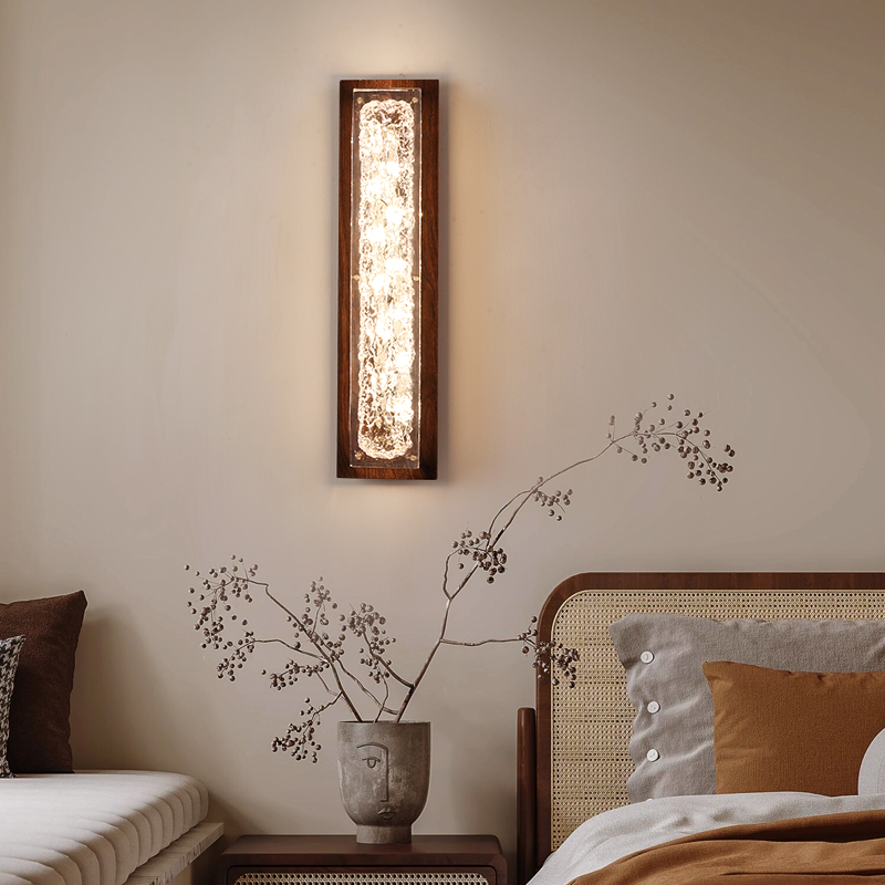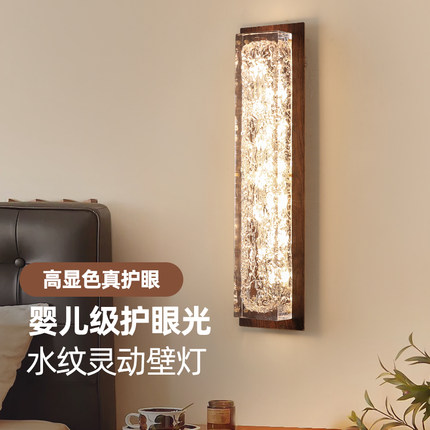 中古风卧室床头壁灯胡桃木色复古新中式过道走廊书房客厅背景墙灯