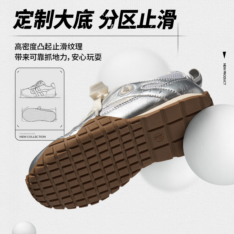 暇步士童鞋儿童运动鞋新款男童鞋子银色网面透气跑步软底休闲鞋子