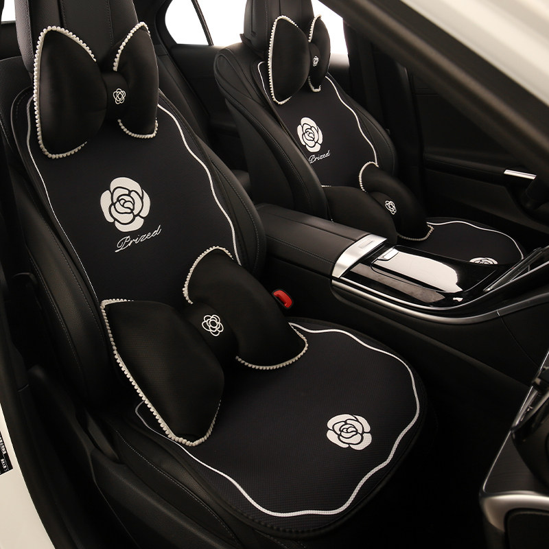 山茶花汽车坐垫四季通用2025新款座椅套车载座垫车垫淑女神高级感
