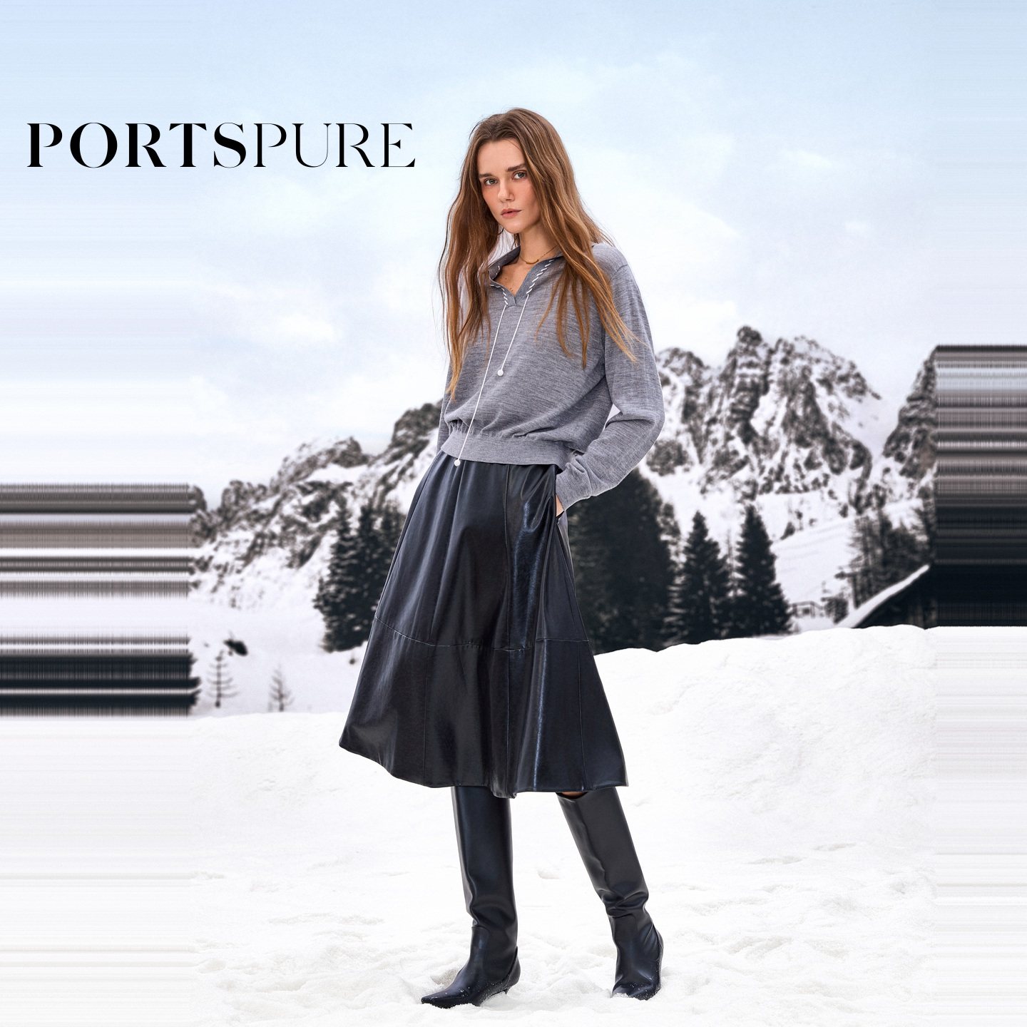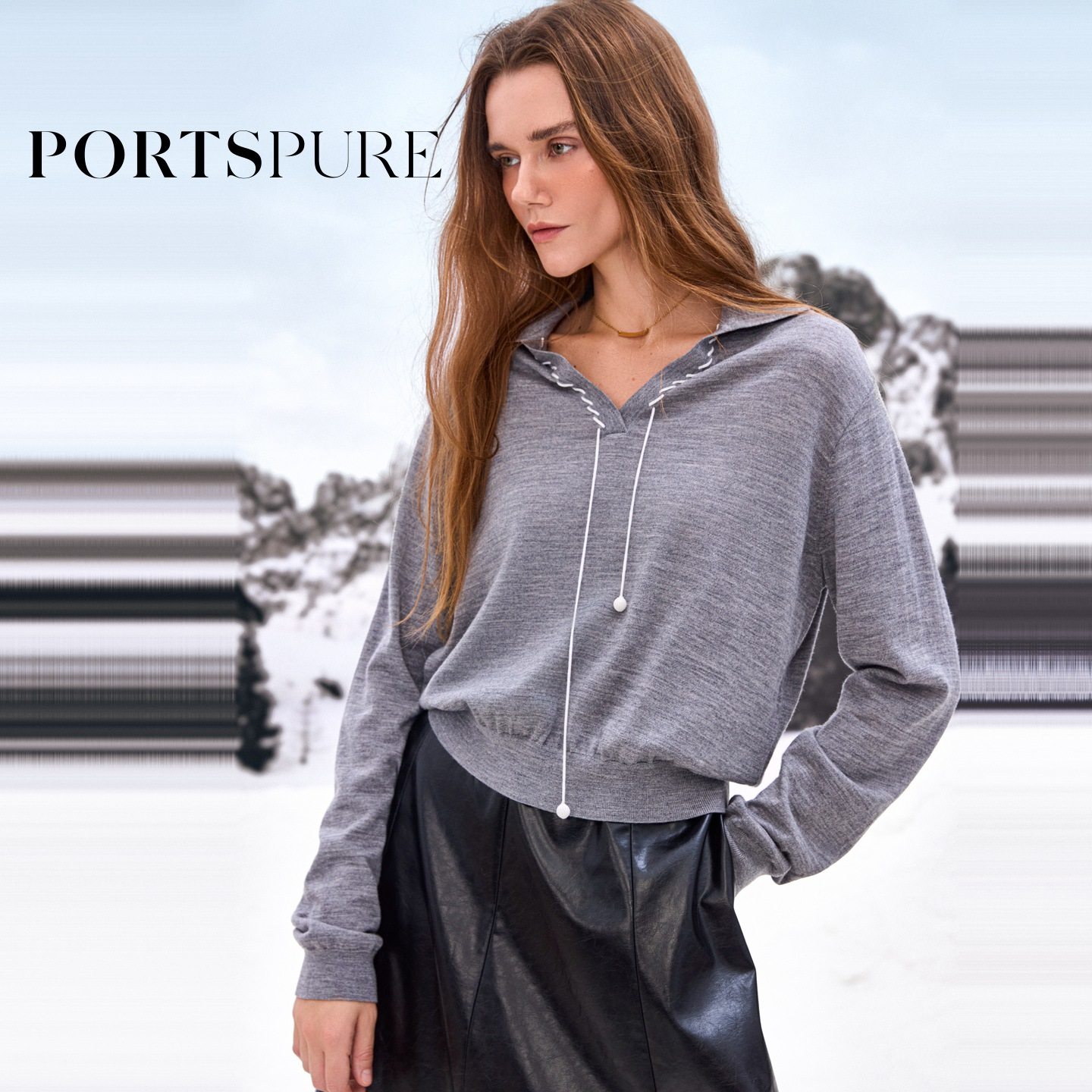 商场同款 宝姿PORTSPURE女装2025秋冬新品百搭V领抽绳针织套头衫