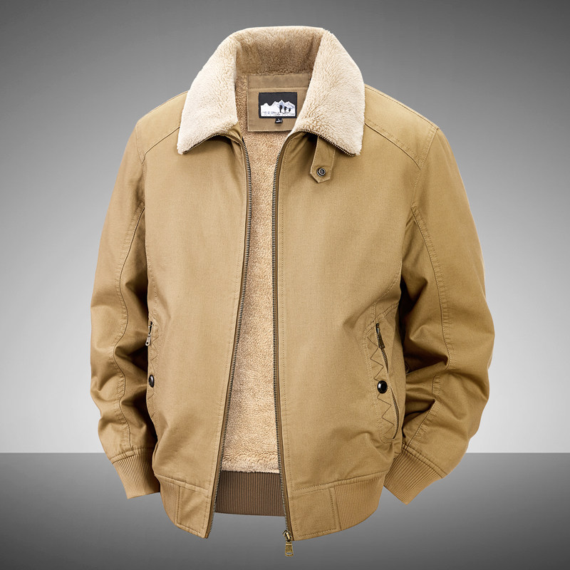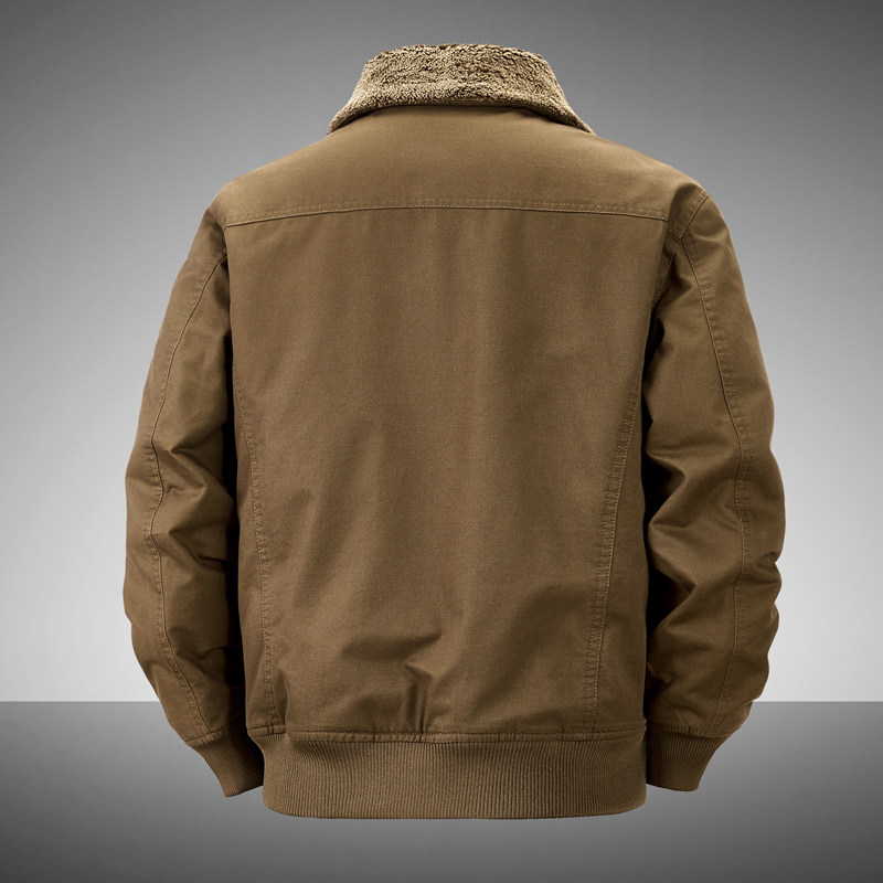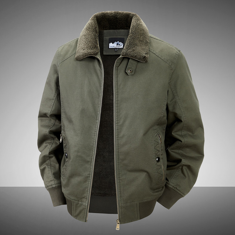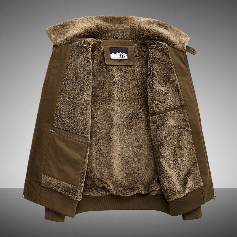 加绒保暖飞行服夹克外套男士多口袋宽松中老年爸爸装加厚棉衣冬季