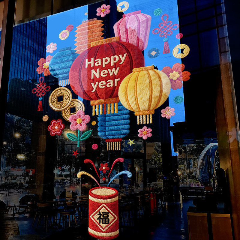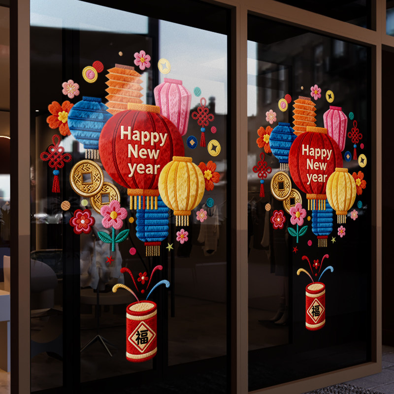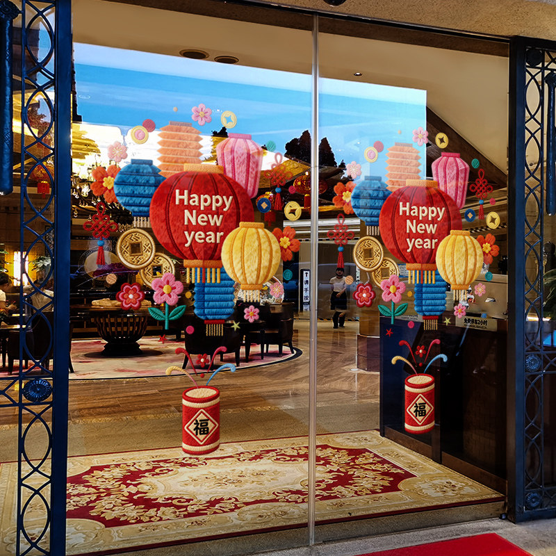 新年装饰窗贴春节热气球装扮布置静电贴马年2026窗花玻璃贴门贴纸