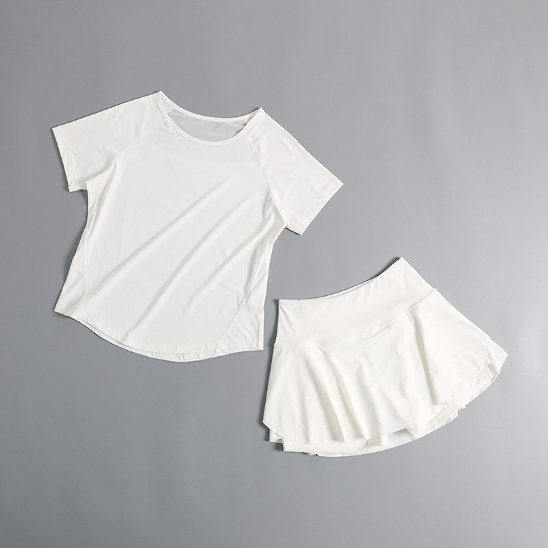 健身瑜伽训练服套装显瘦跑步运动速干吸汗短裙短袖透气防走光透气