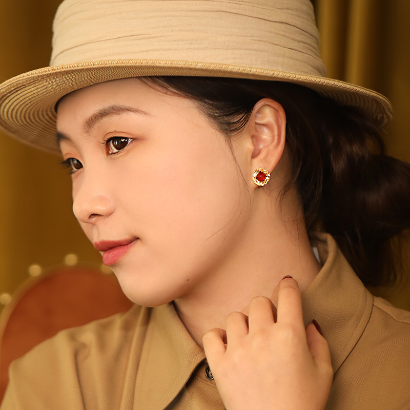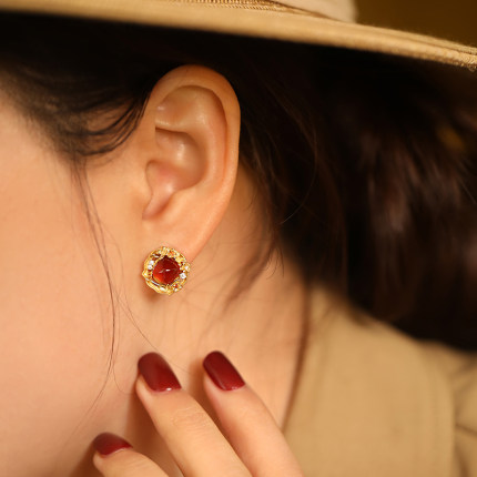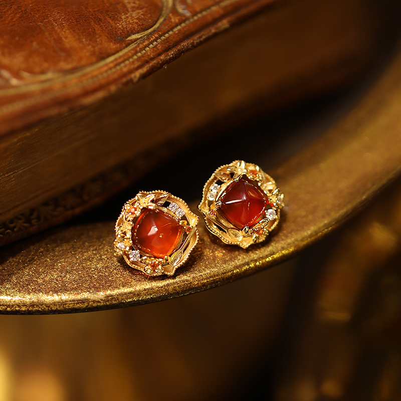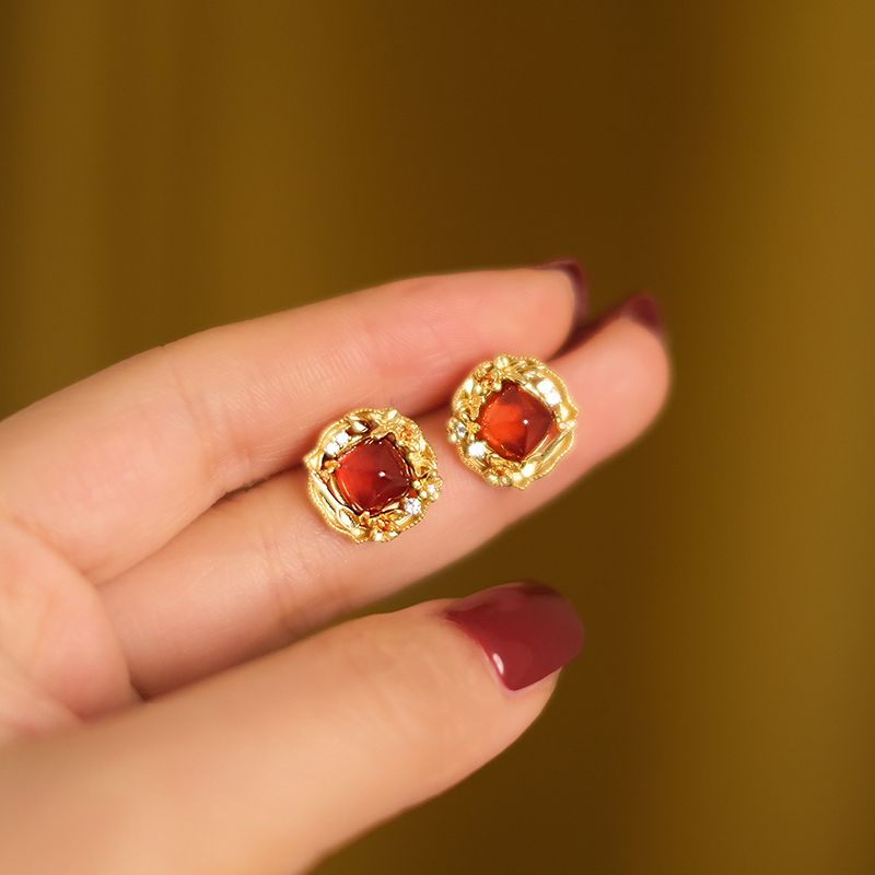 《桂花·布丁》原创设计复古高级感石榴石糖塔切割纯银彩宝耳钉女