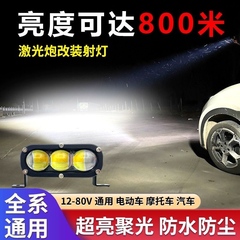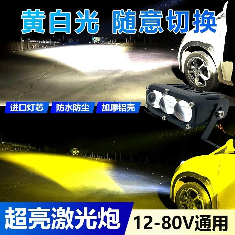 汽车隐藏式防水中网射灯白黄光格栅灯越野激光炮双色雾灯无损安装