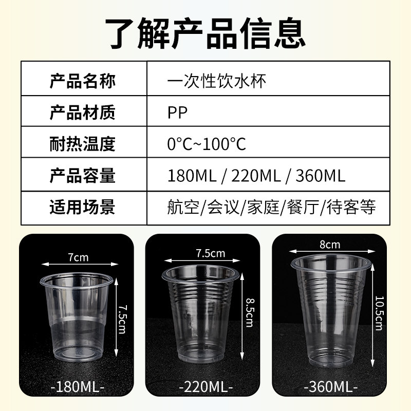 馨慕洁一次性杯子透明杯塑料杯加厚航空杯家用饮茶水杯整箱中小号
