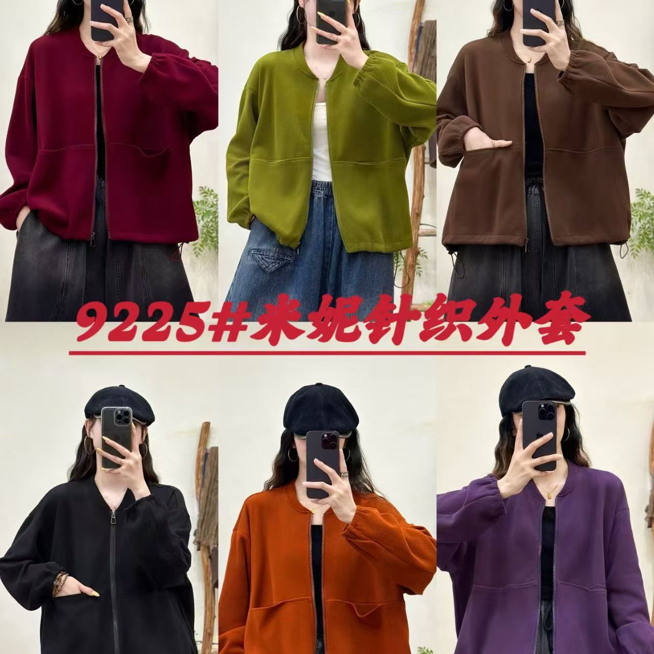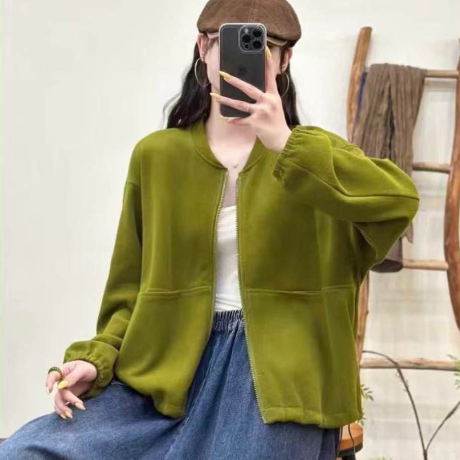 简约宽松百搭棒球服领上衣女新款时尚隐双口袋拉链外套H42