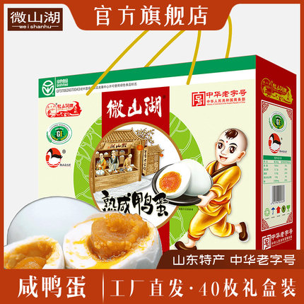 正宗微山湖特产咸鸭蛋特大红心40枚礼品两盒农家麻鸭蛋流油年货节