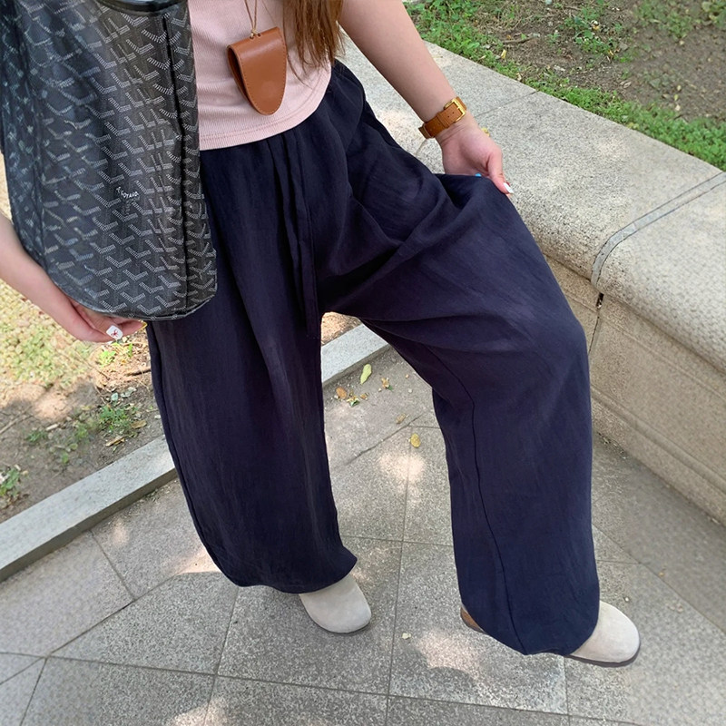 藏青色天丝亚麻弯刀裤子大码女胖mm显瘦夏季冰丝防晒阔腿杨桃裤潮