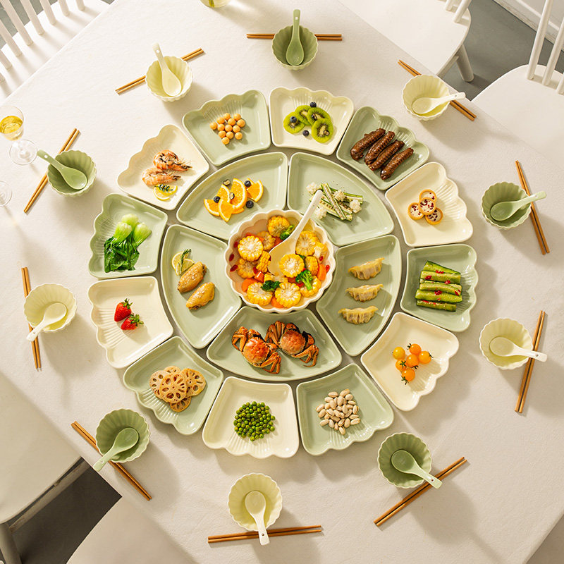 过年团圆陶瓷十八拼盘套装家用圆桌拼盘餐具组合吃年夜饭聚餐碗碟