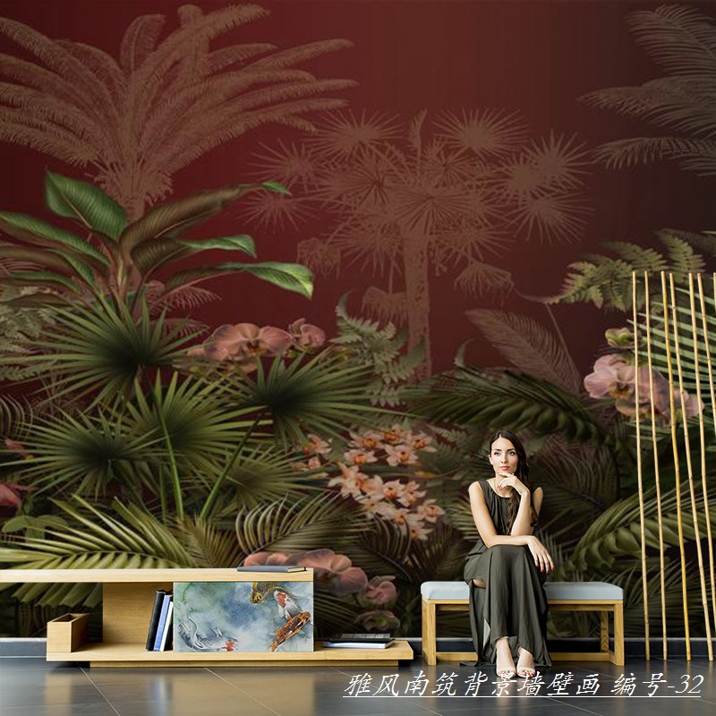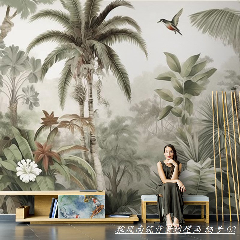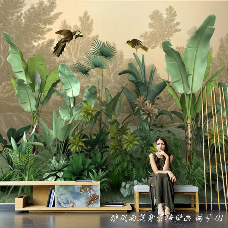 3d立体壁纸东南亚风热带雨林电视背景墙壁纸客厅壁布卧室墙布壁画