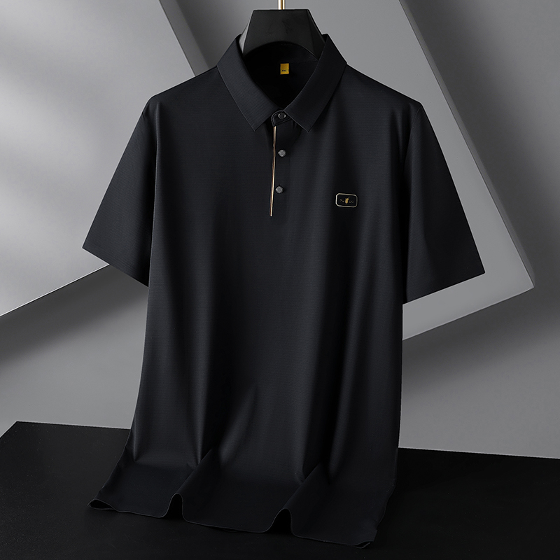 肥佬宽松短袖polo衫夏装冰丝免烫加肥加大码半袖男士翻领凉感T恤