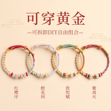 可穿黄金手绳女手工编绳半成品diy转运珠手链男DIY桃花结红绳编绳
