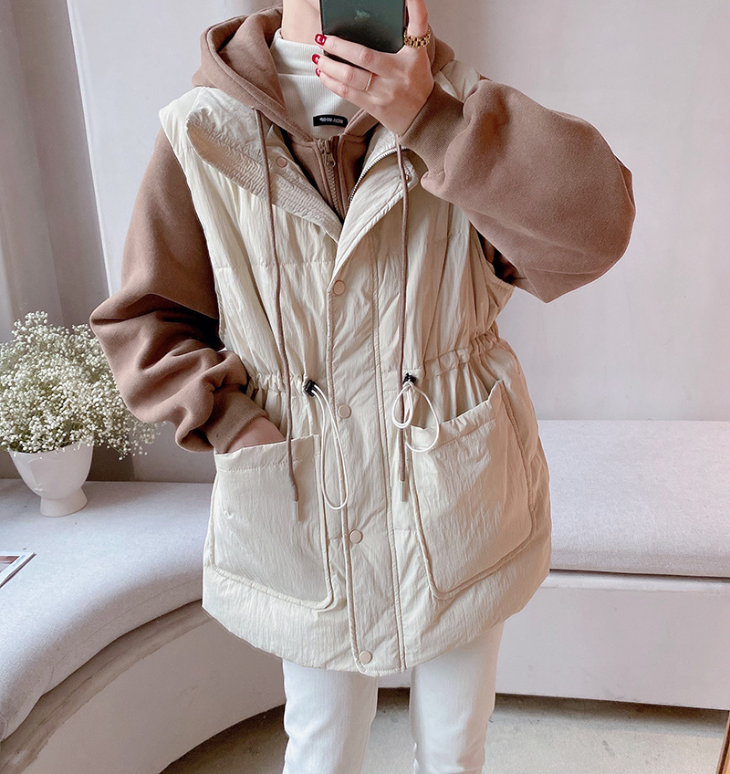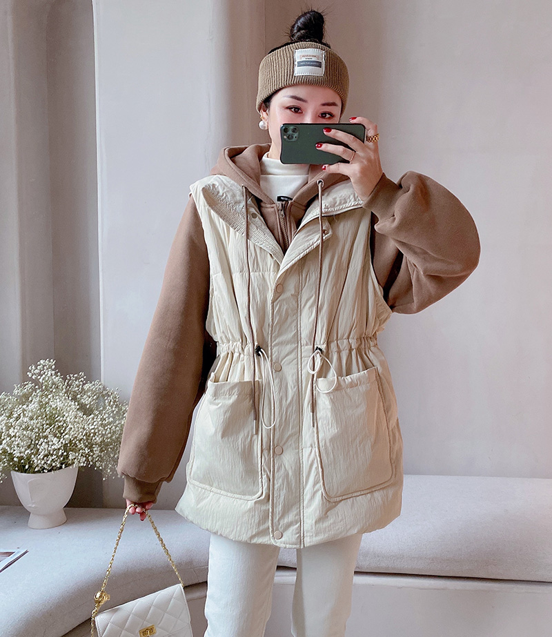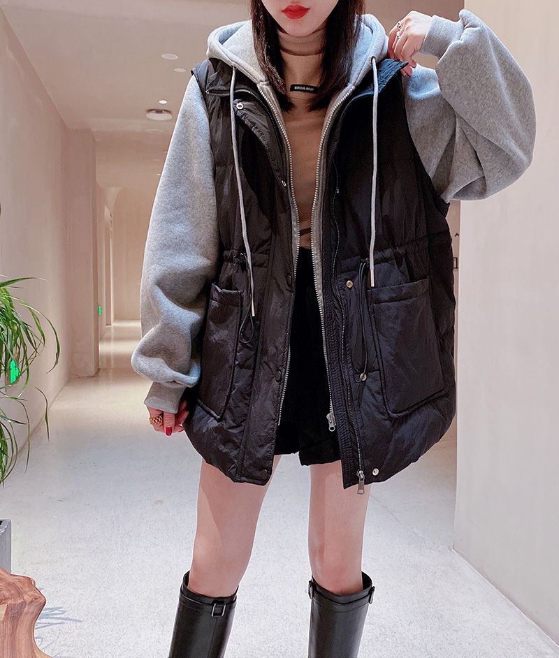 羽绒服拼接马甲假两件外套女2025冬新款宽松显瘦连帽马夹卫衣潮