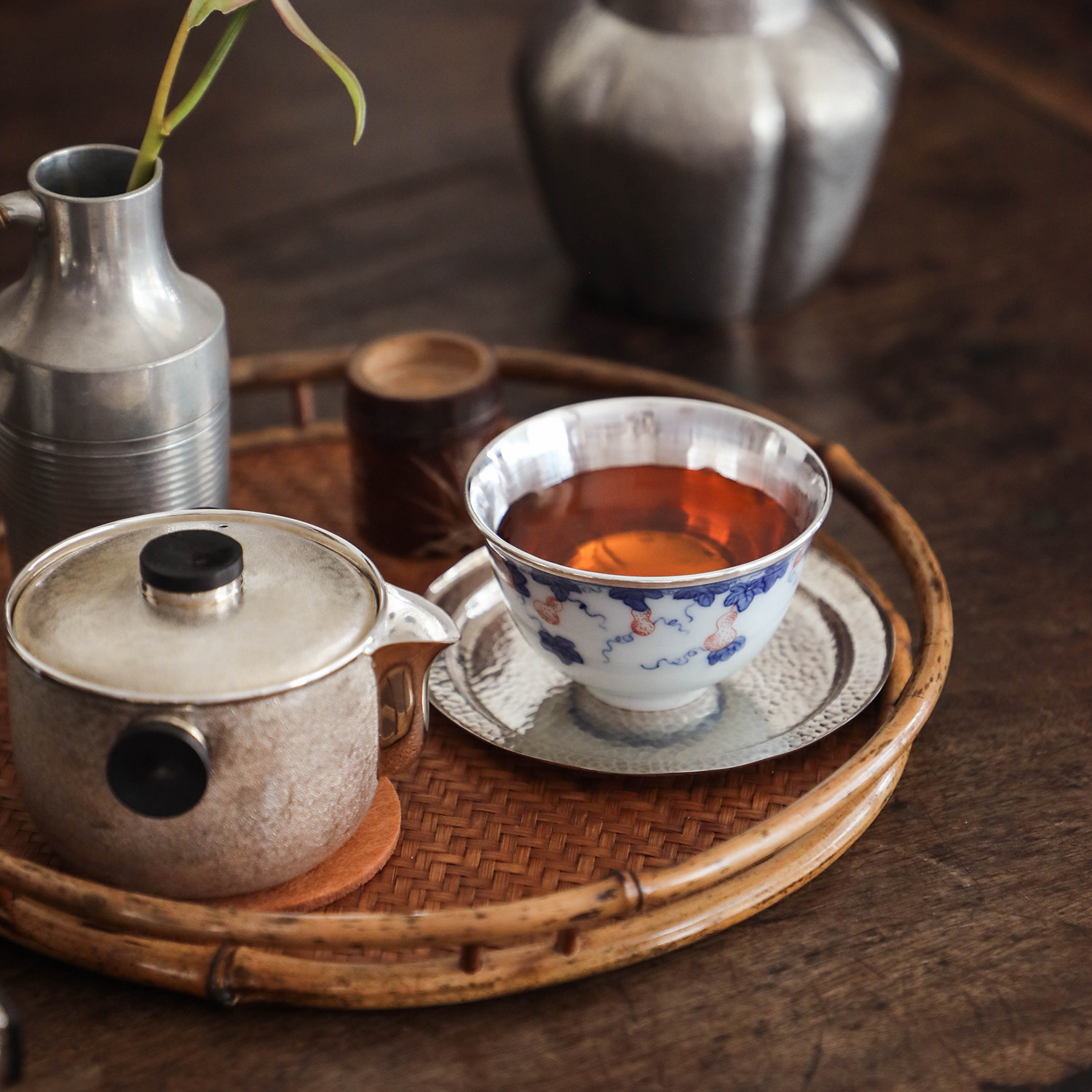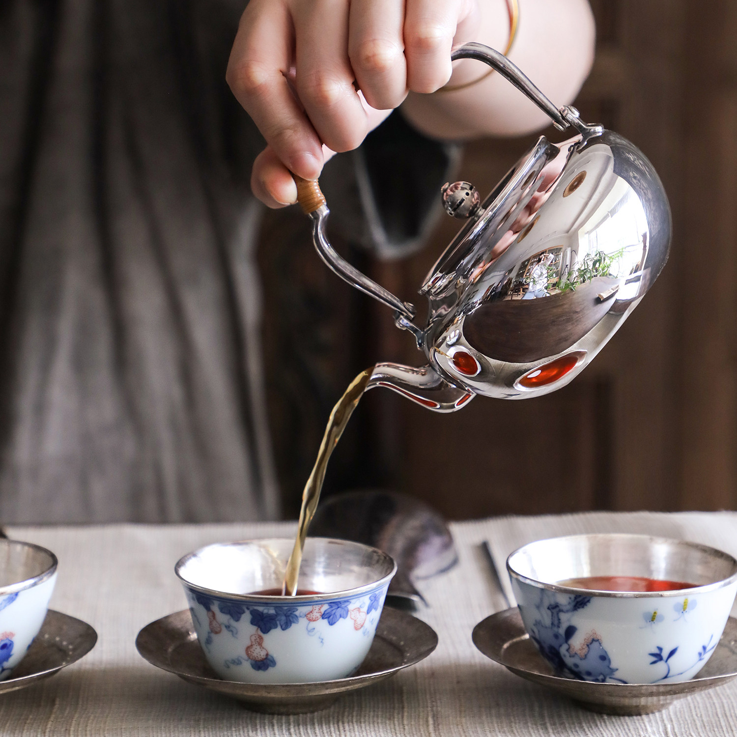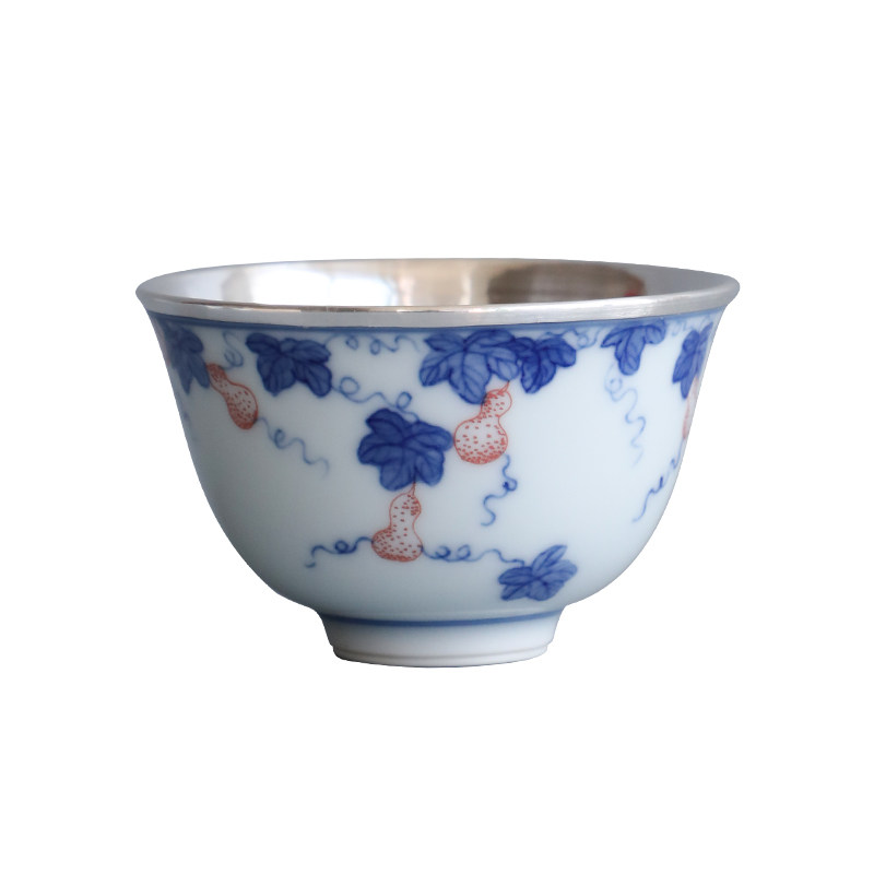 纯银时代 青花葫芦纯银内胆足银999品茗主人杯中式家用茶杯100ml