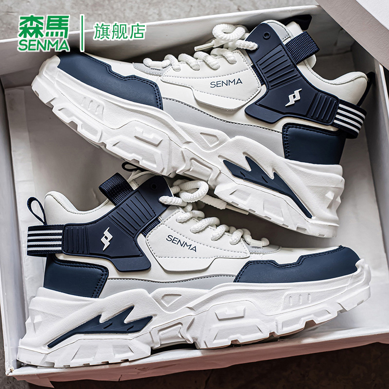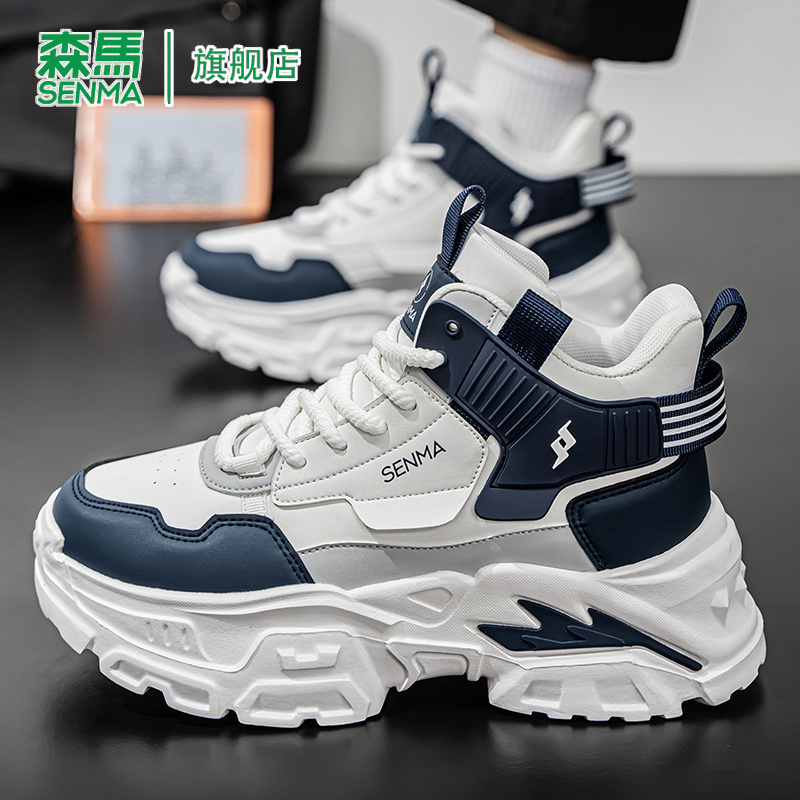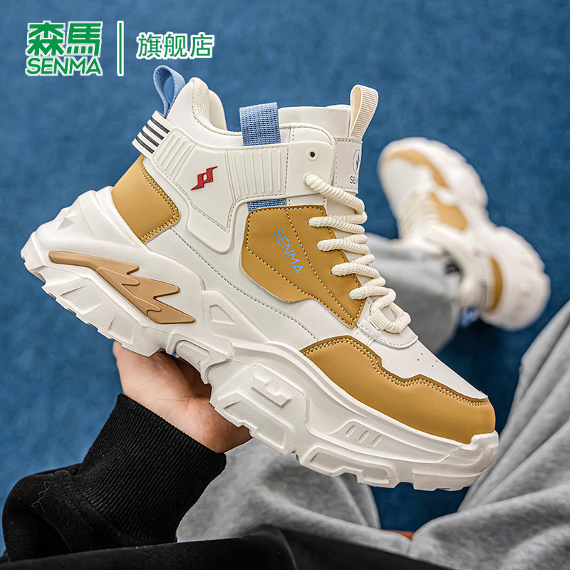 森马男鞋高帮厚底真皮2025新款秋季运动鞋防滑潮流拼色休闲老爹鞋