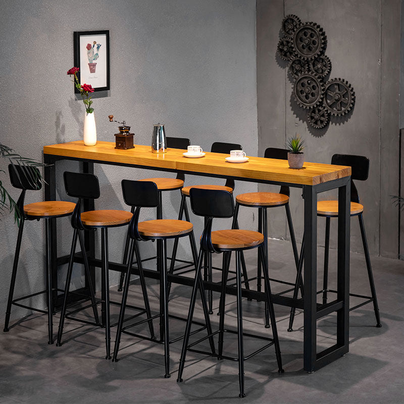 吧台桌家用简约创意现代酒吧餐厅靠墙实木桌椅组合高脚桌长条桌