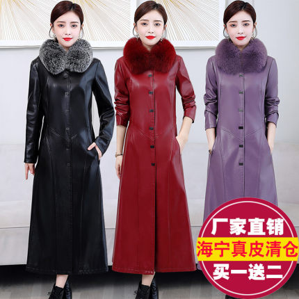 狐狸毛领真皮皮衣女长款加棉风衣