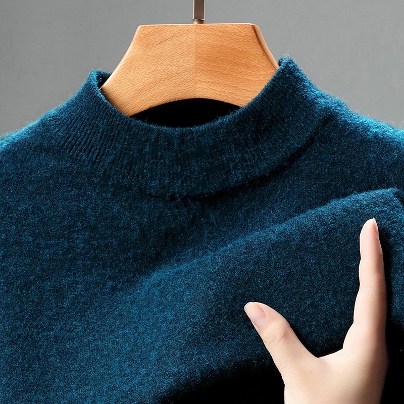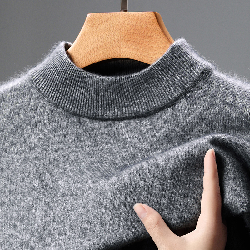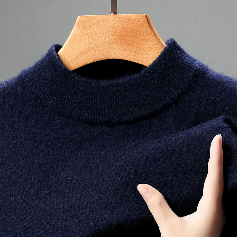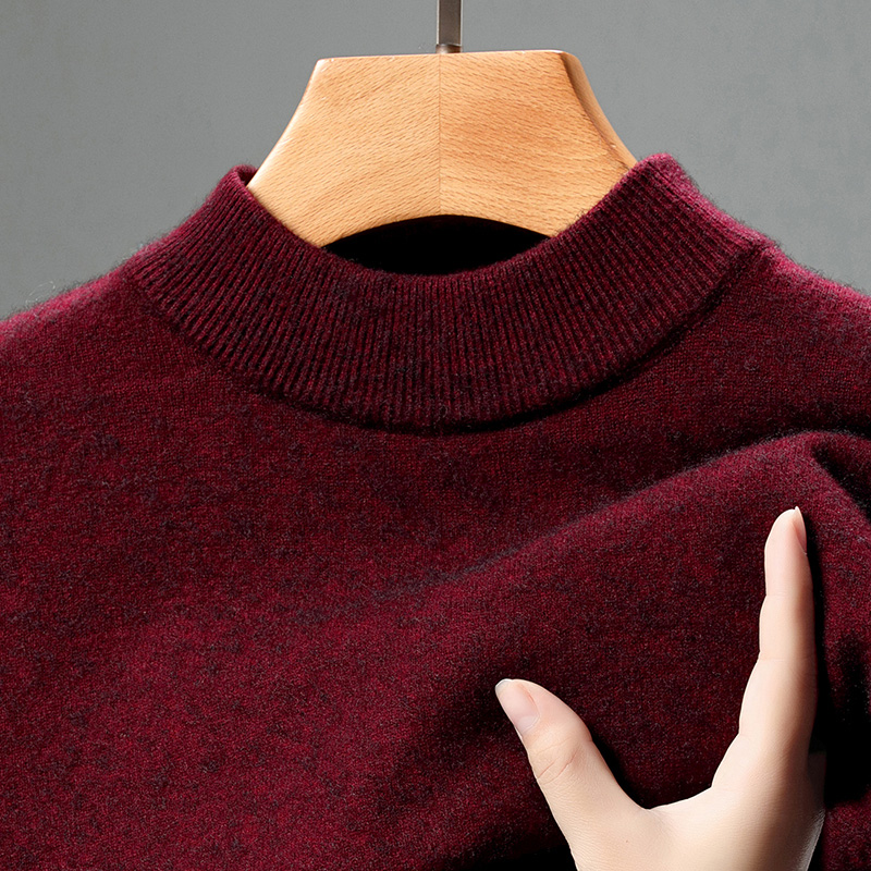 鄂尔多斯市100%羊毛衫男半高领加厚针织羊毛衫中年圆领毛衣爸爸装