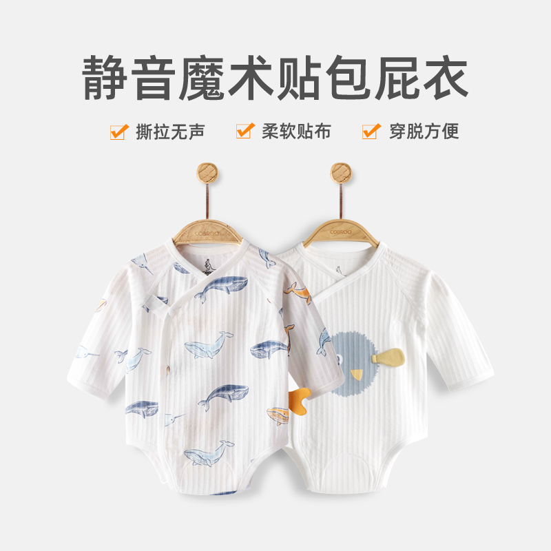 酷尾巴易撕贴婴儿小码包屁衣宝宝四季三角哈衣新生纯棉2件装衣服