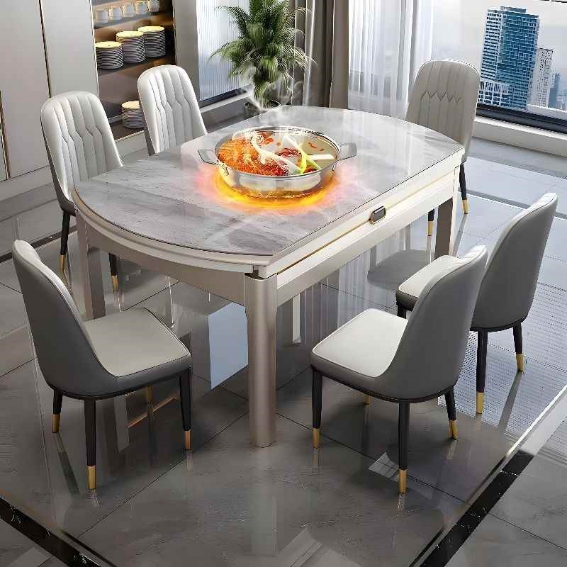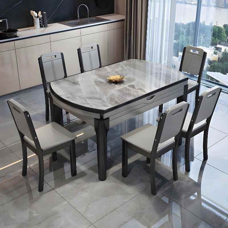岩板餐桌椅组合现代简约家用小户型轻奢饭桌可变圆桌伸缩实木餐桌