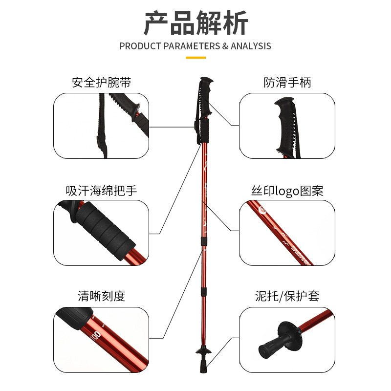 Cleye铝合金三节避震T柄直柄登山杖拐杖手杖徒步户外用品登山杖