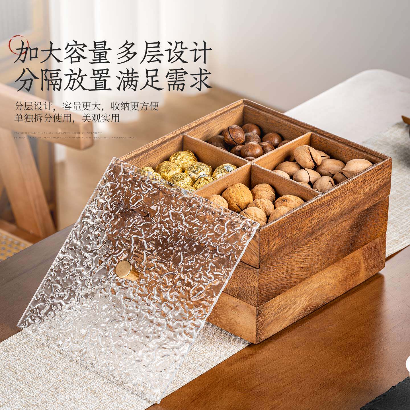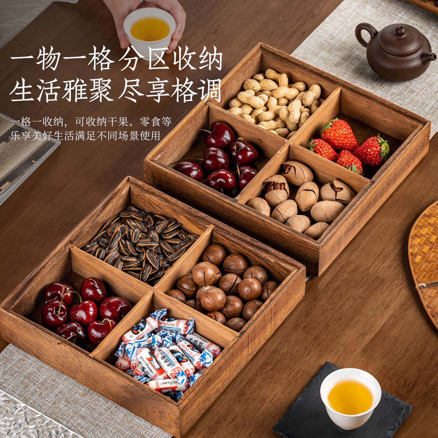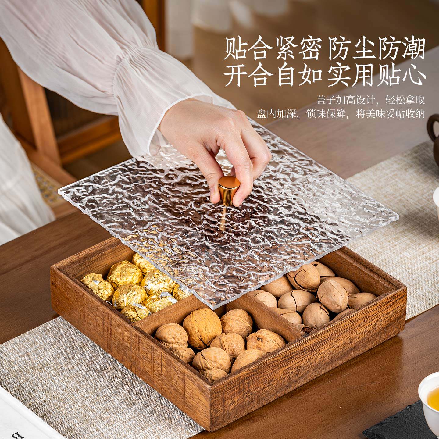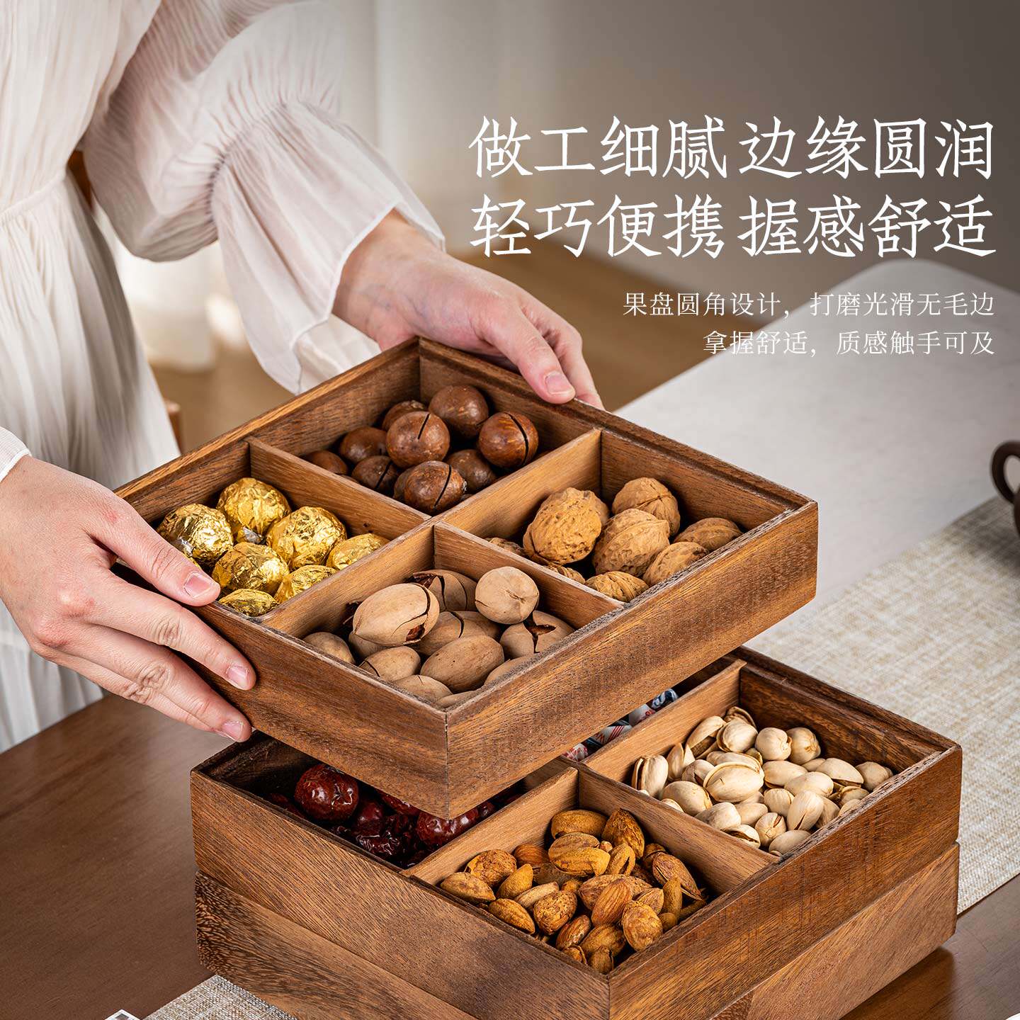 高端木质果盘客厅茶几家用大气上档次坚干果分格盘糖果零食收纳盒
