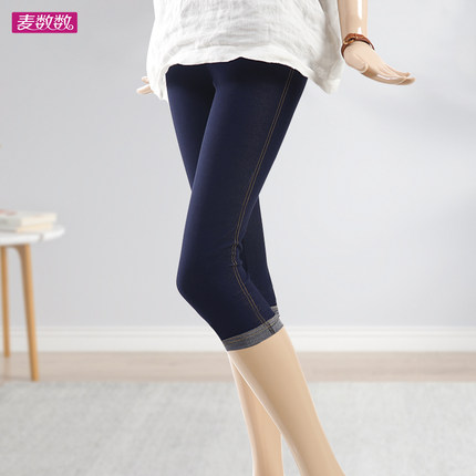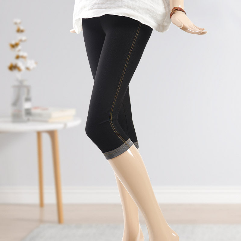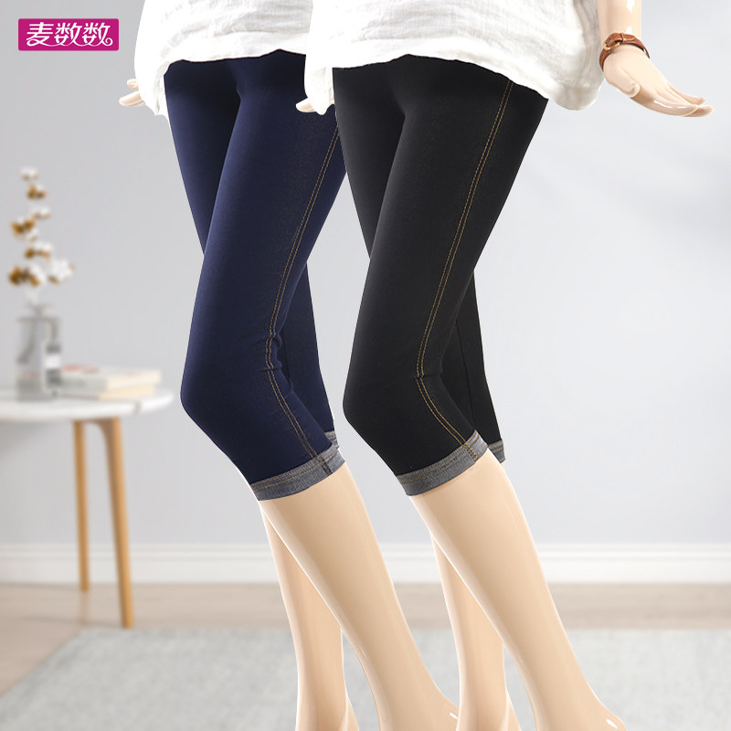 七分打底裤女夏薄款弹力仿牛仔显瘦高腰大码MM外穿防走光7分过膝
