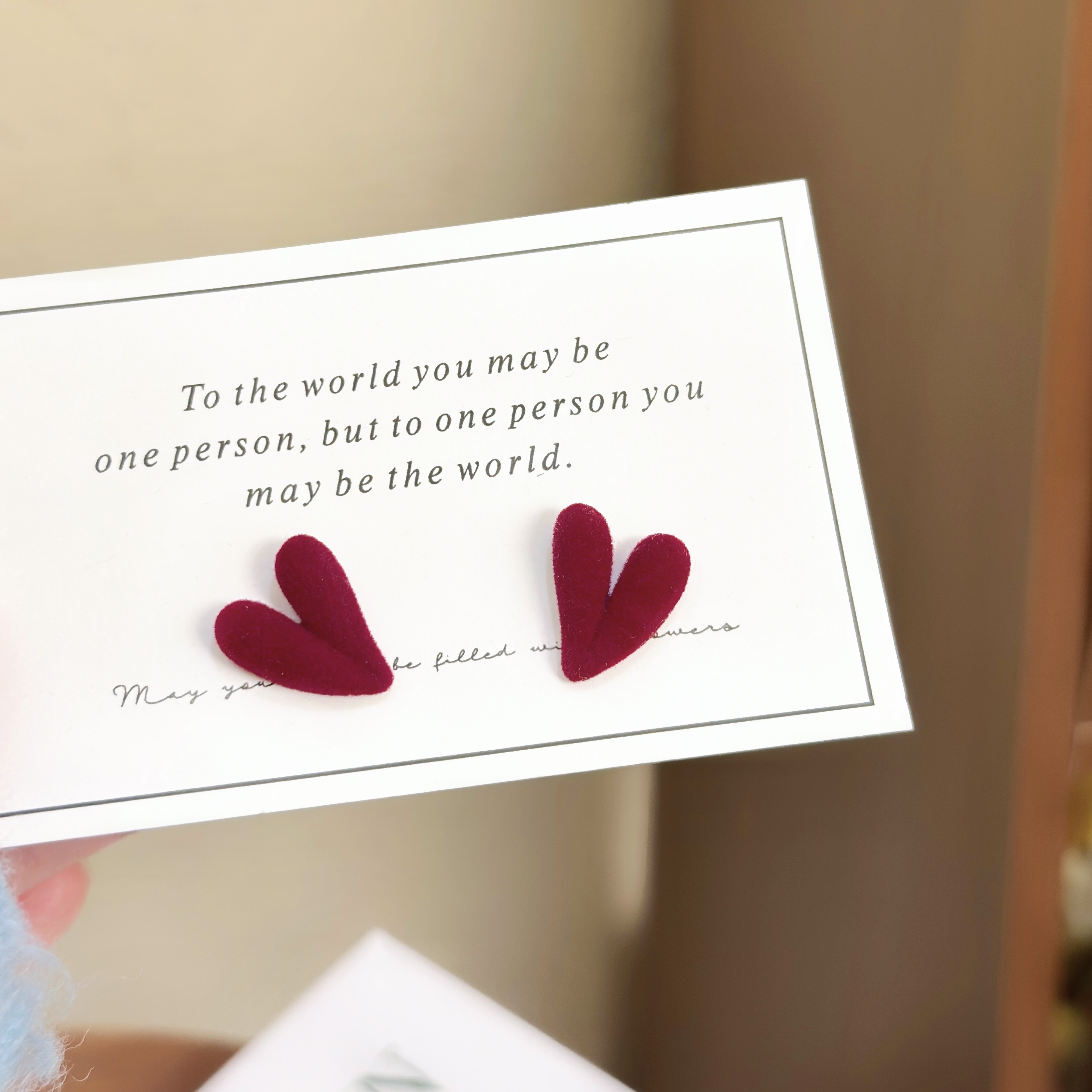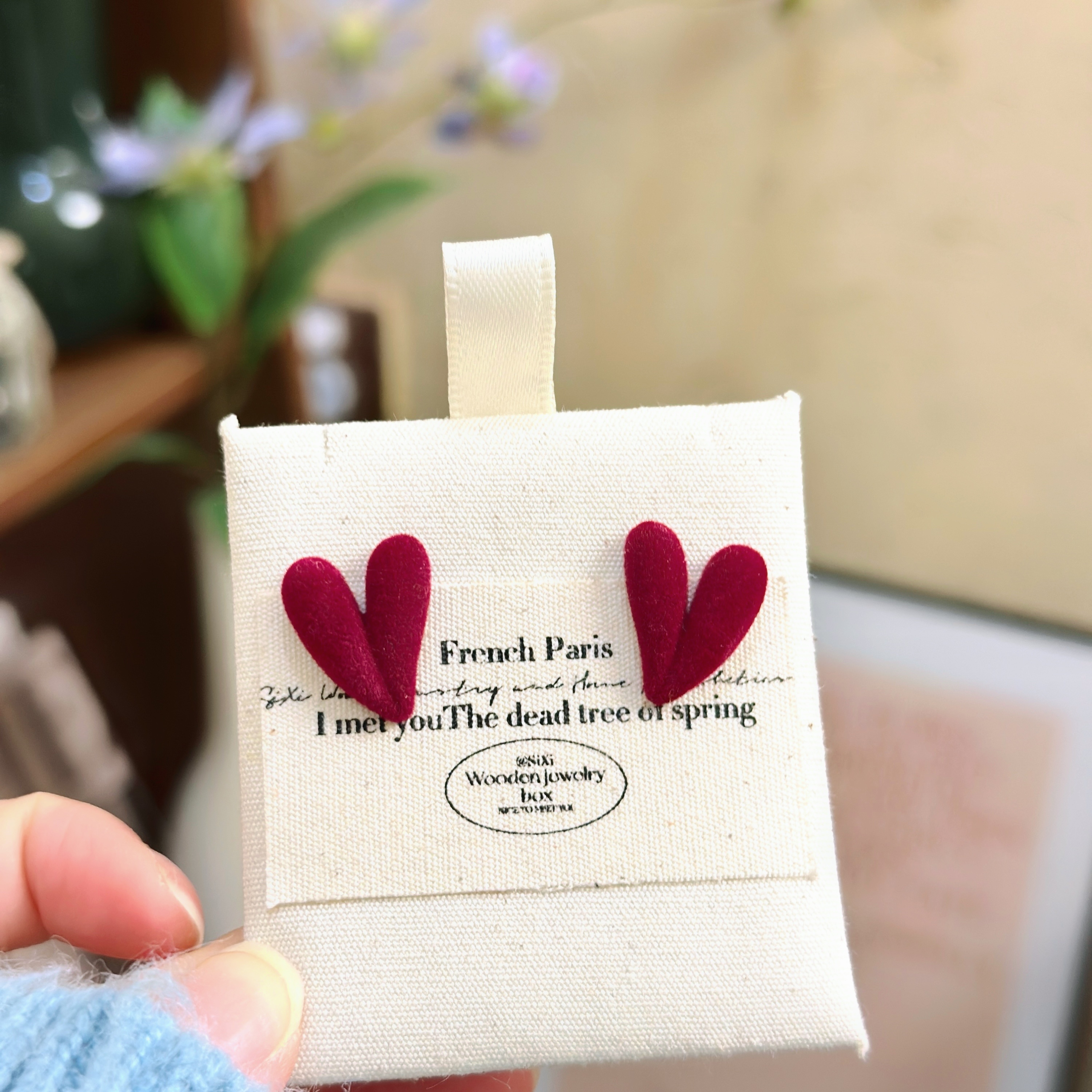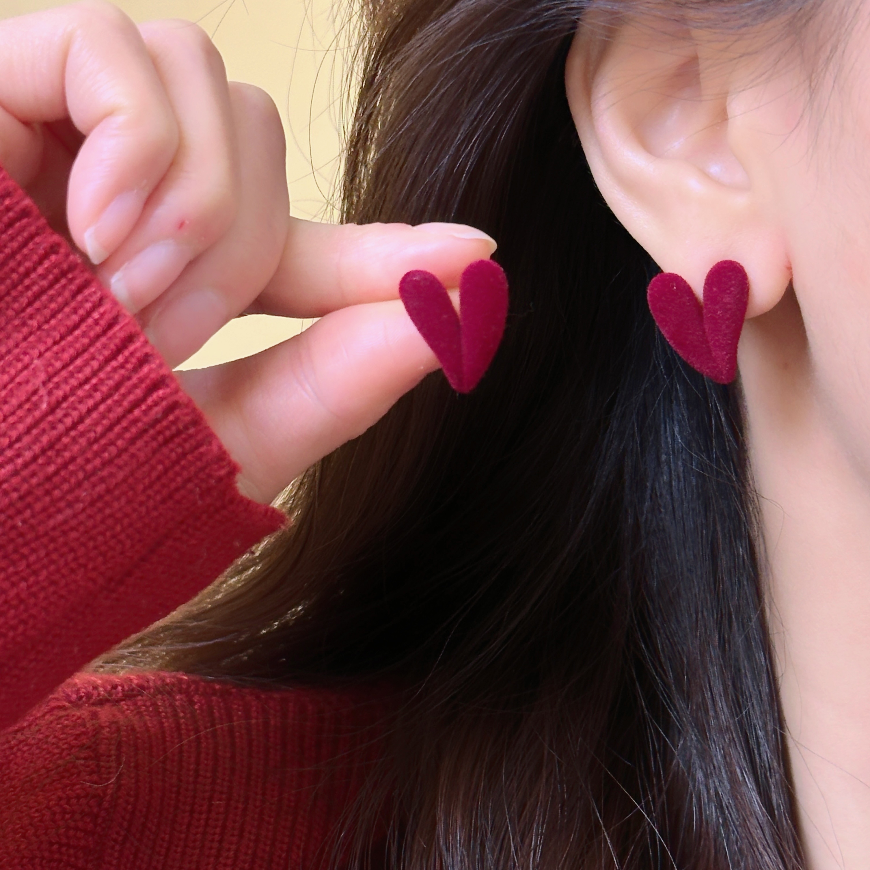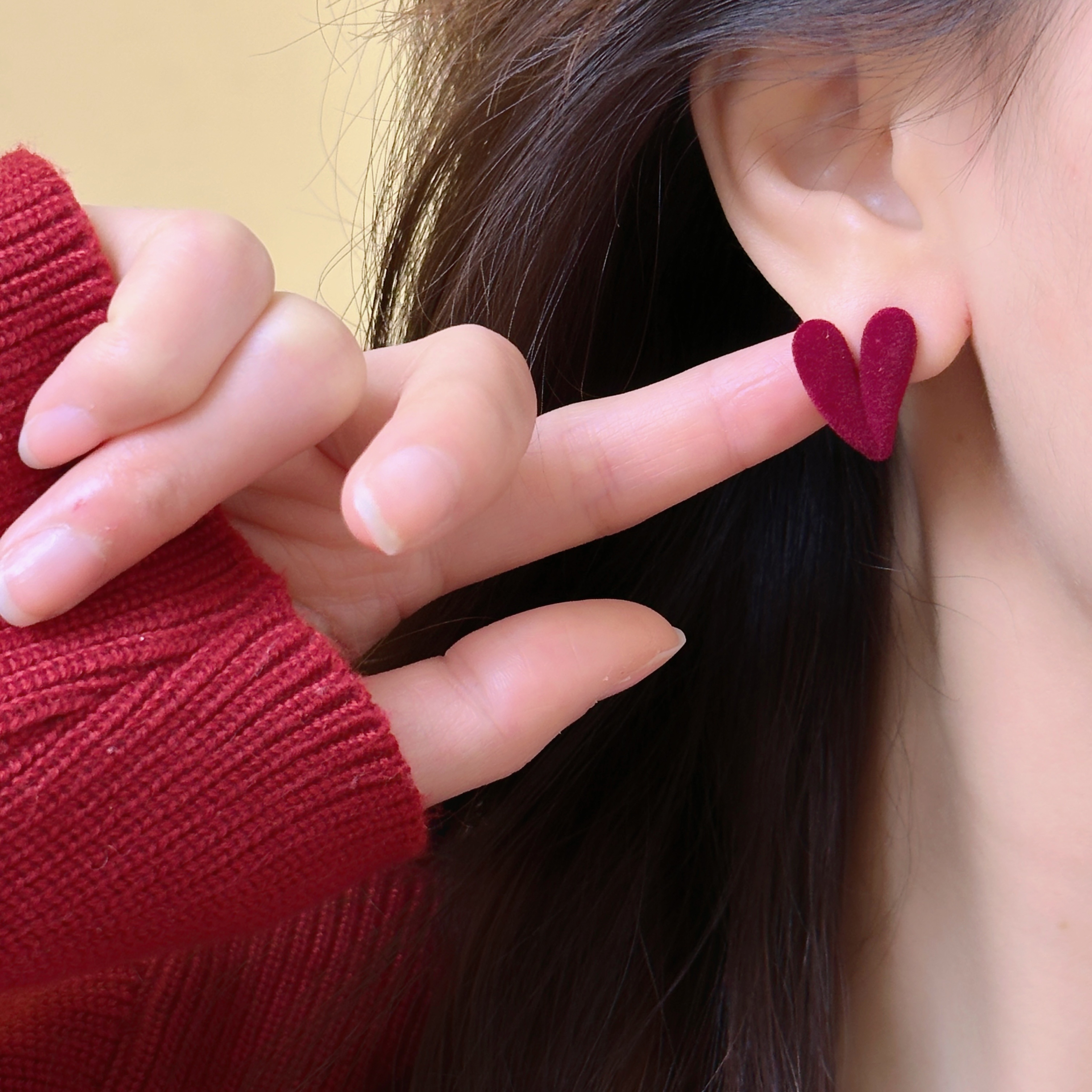 新年红色秋冬法式植绒爱心耳环耳钉女轻奢高级感大气独特绝美耳夹