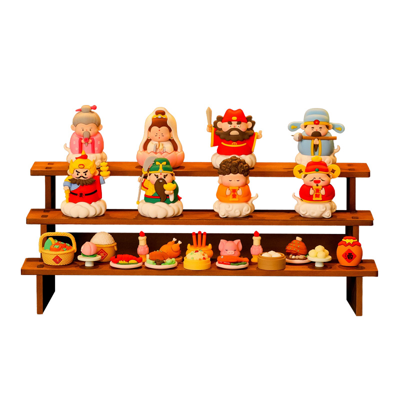 新中式复古支架财神爷供奉摆件全套家用店铺客厅前台桌面装饰盒