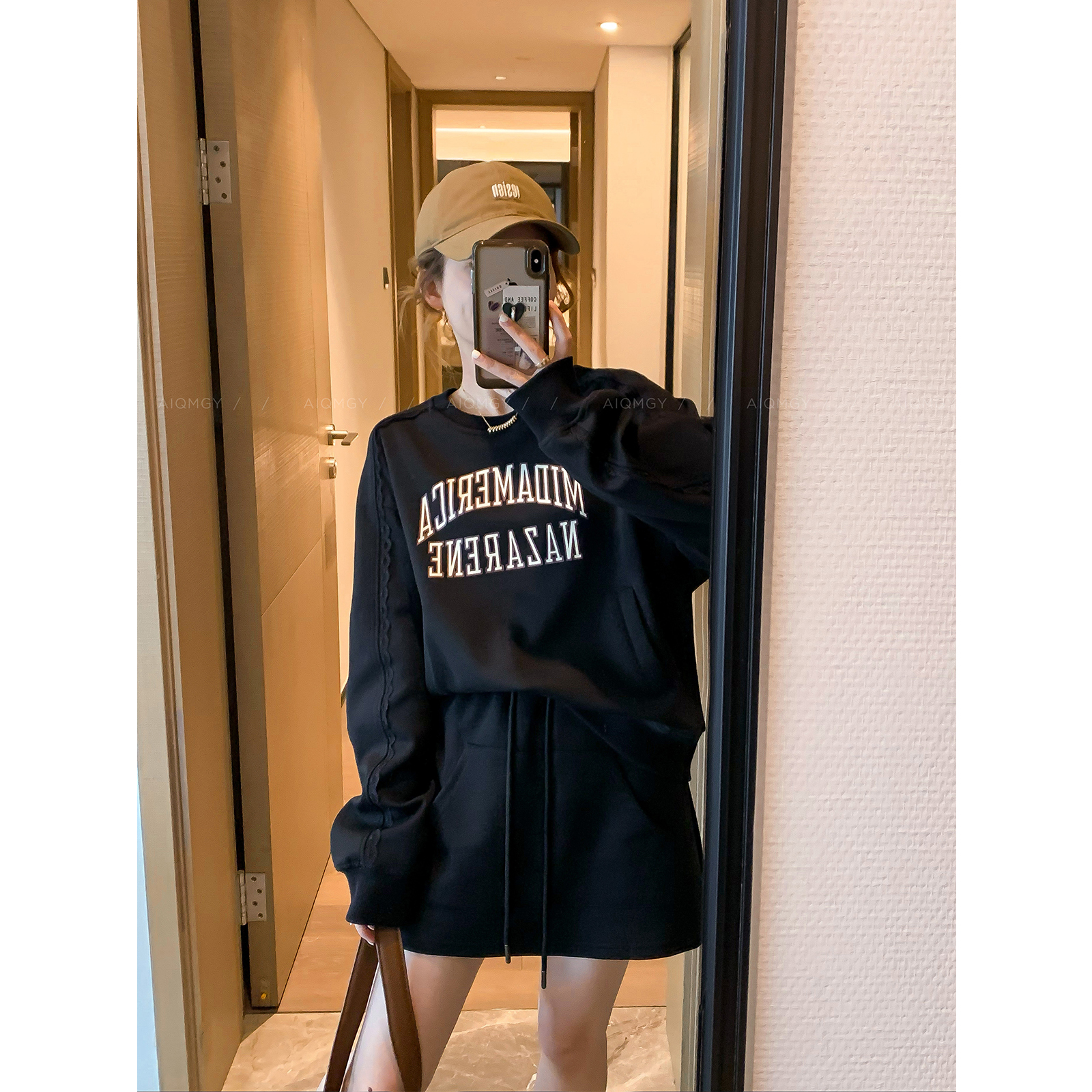 爱情魔鬼鱼 灰色卫衣套装女2025秋季新款圆领上衣A字半身裙两件套