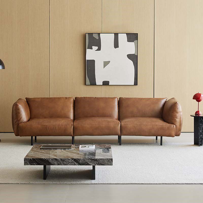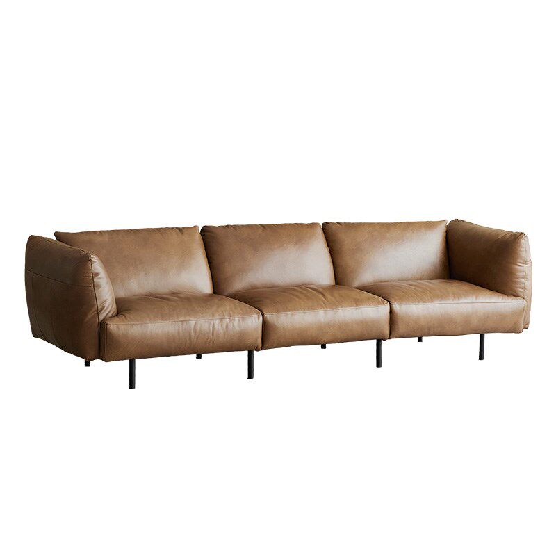 轻奢现代全真皮沙发小户型客厅皮艺意式极简头层牛皮直排三人沙发