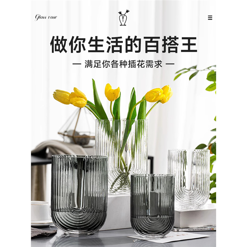 创意北欧简约玻璃花瓶U型网红原色几何客厅干花鲜花插花装饰摆件