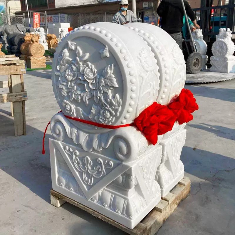 石雕门墩天然汉白玉抱鼓石一对家用别墅镇宅招财貔貅麒麟狮子摆件