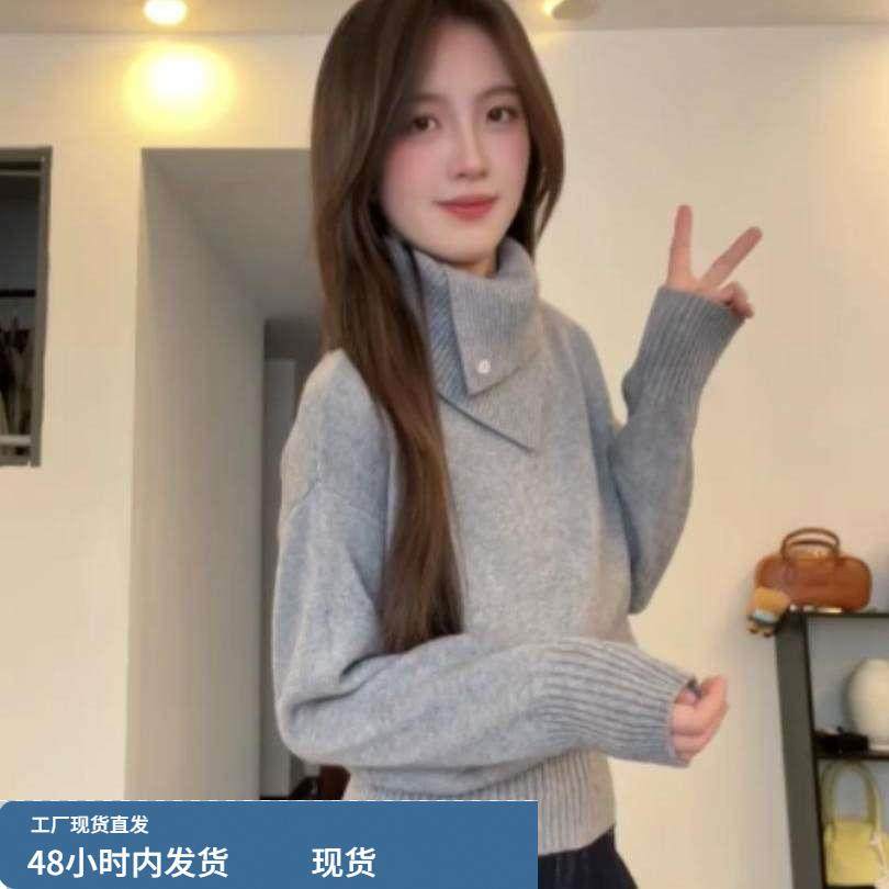 韩系简约高领毛衣女秋冬灰色设计感长袖打底高级感针织衫内搭上衣
