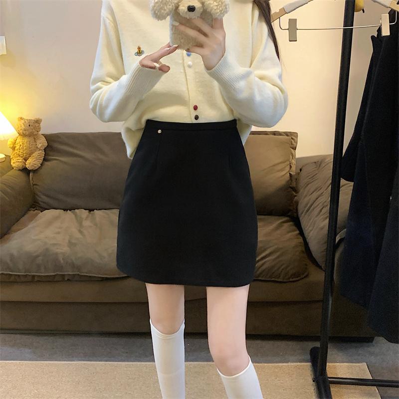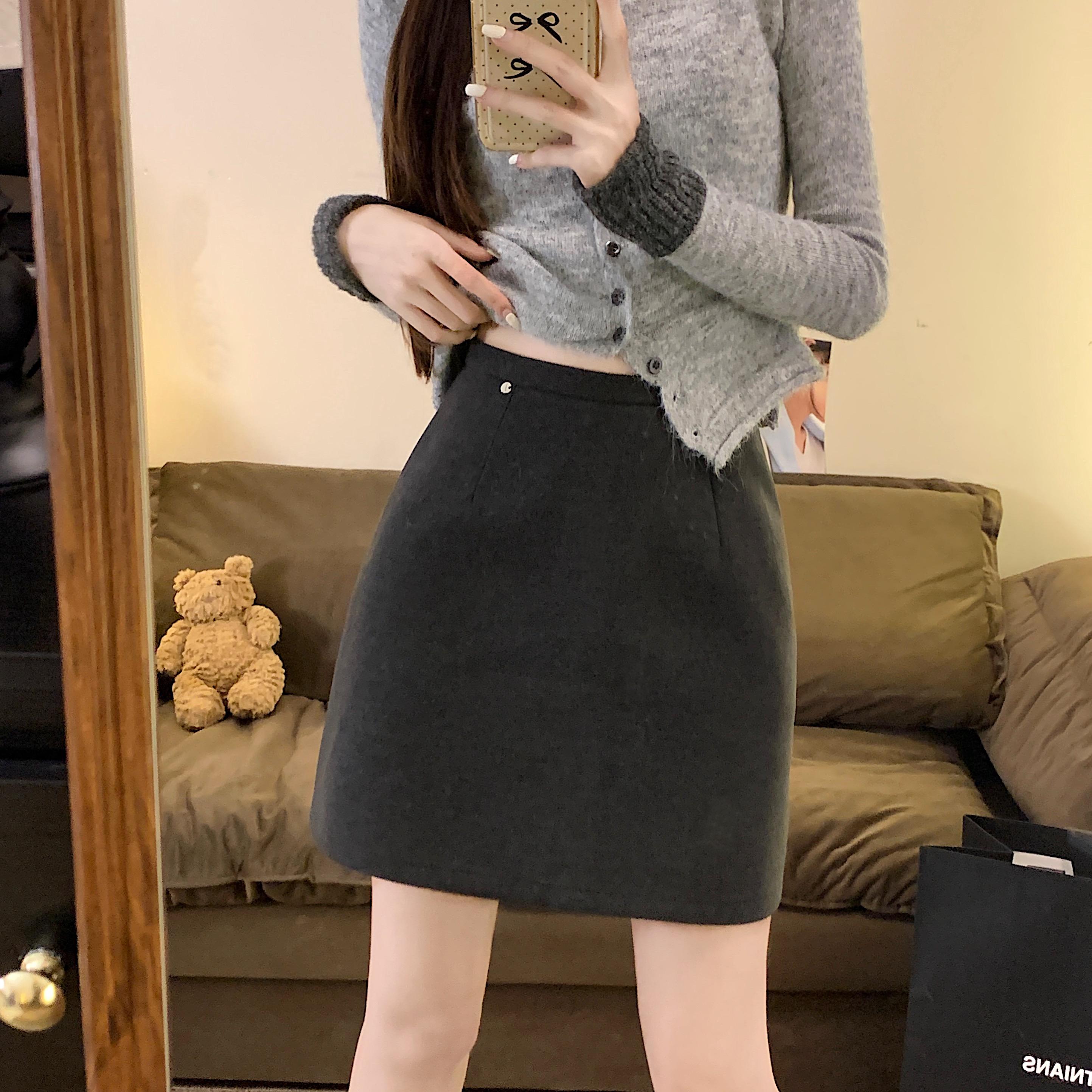 韩系高腰毛呢半身裙女秋冬大码防走光A字裙灰色显瘦百搭小短裙胖M