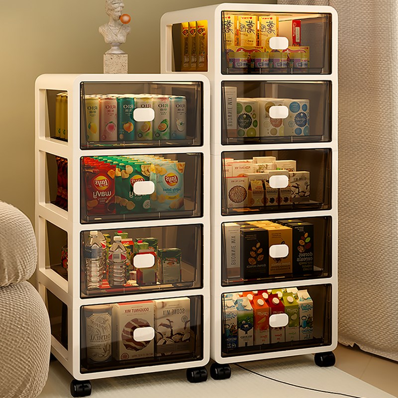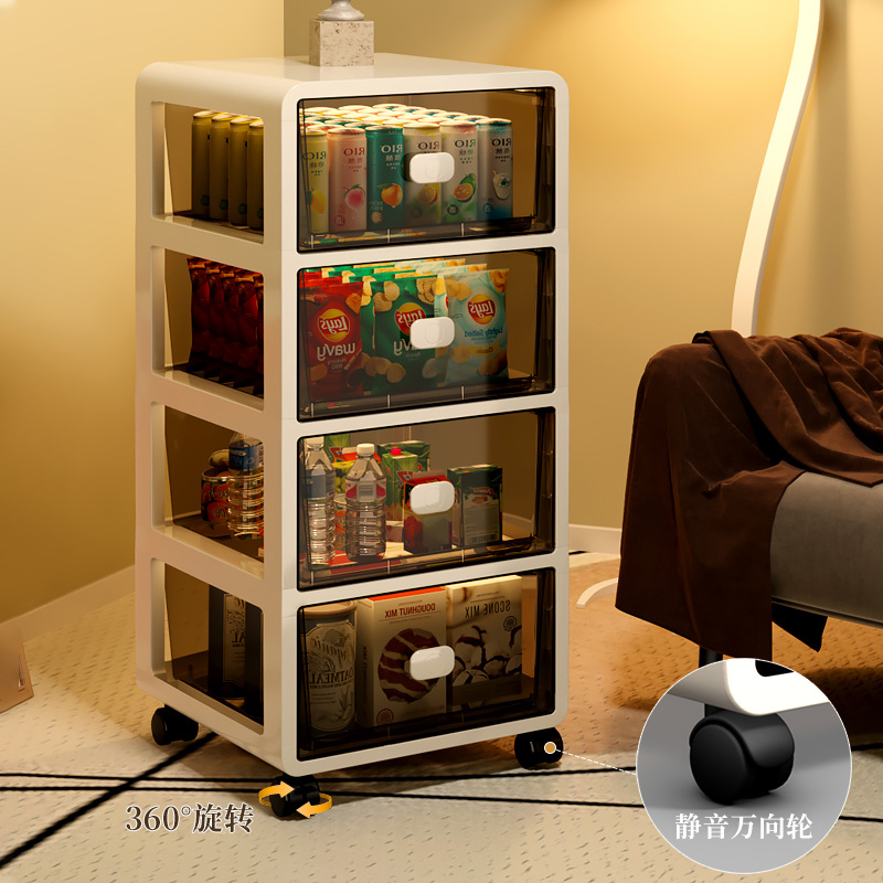 速发抽屉式收纳柜塑料家用多层客厅夹缝零食储物柜子床头置物架整