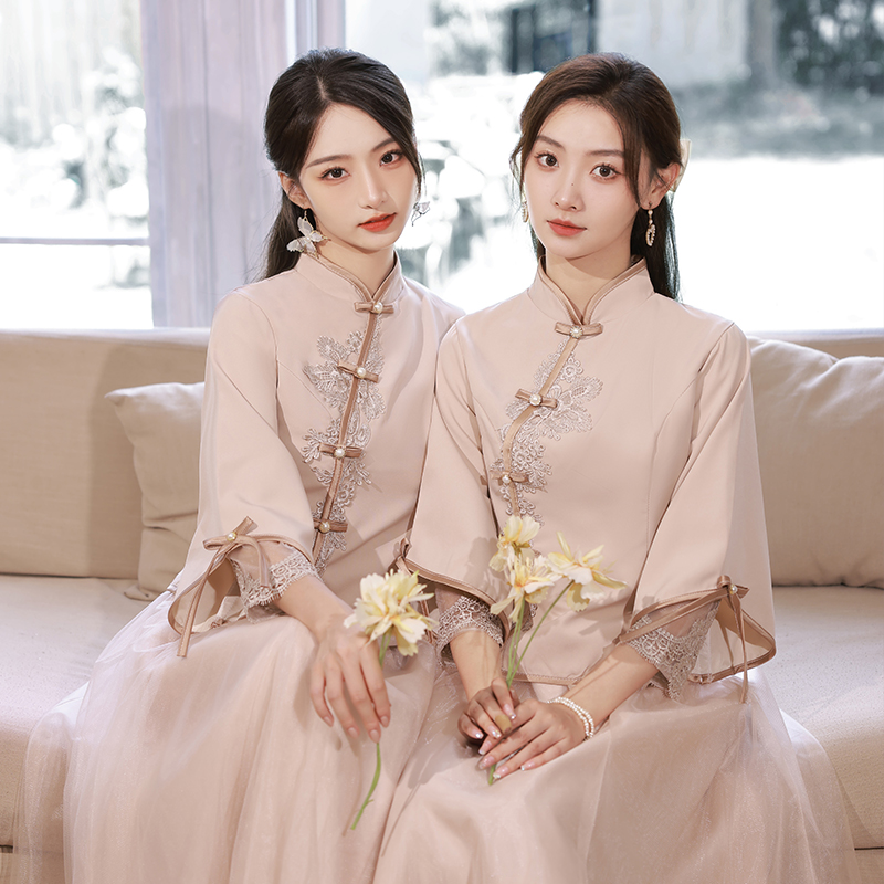 中式伴娘服2025新款小个子姐妹团礼服中国风旗袍汉服大码伴娘裙女