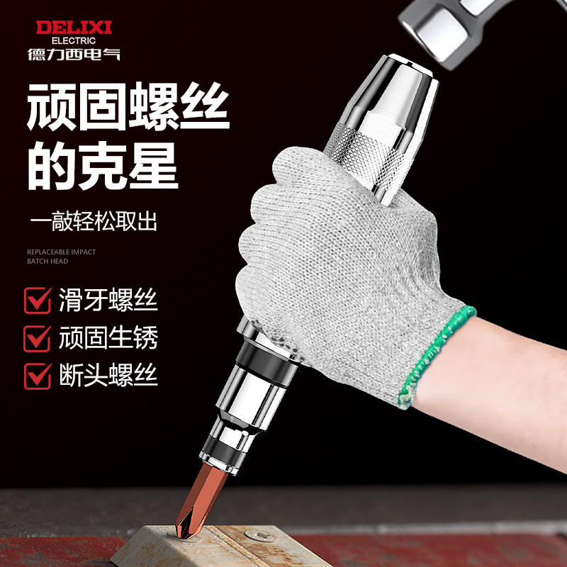 德力西电气高强度冲击螺丝刀撞批头螺丝取出拆卸器敲击冲子改锥