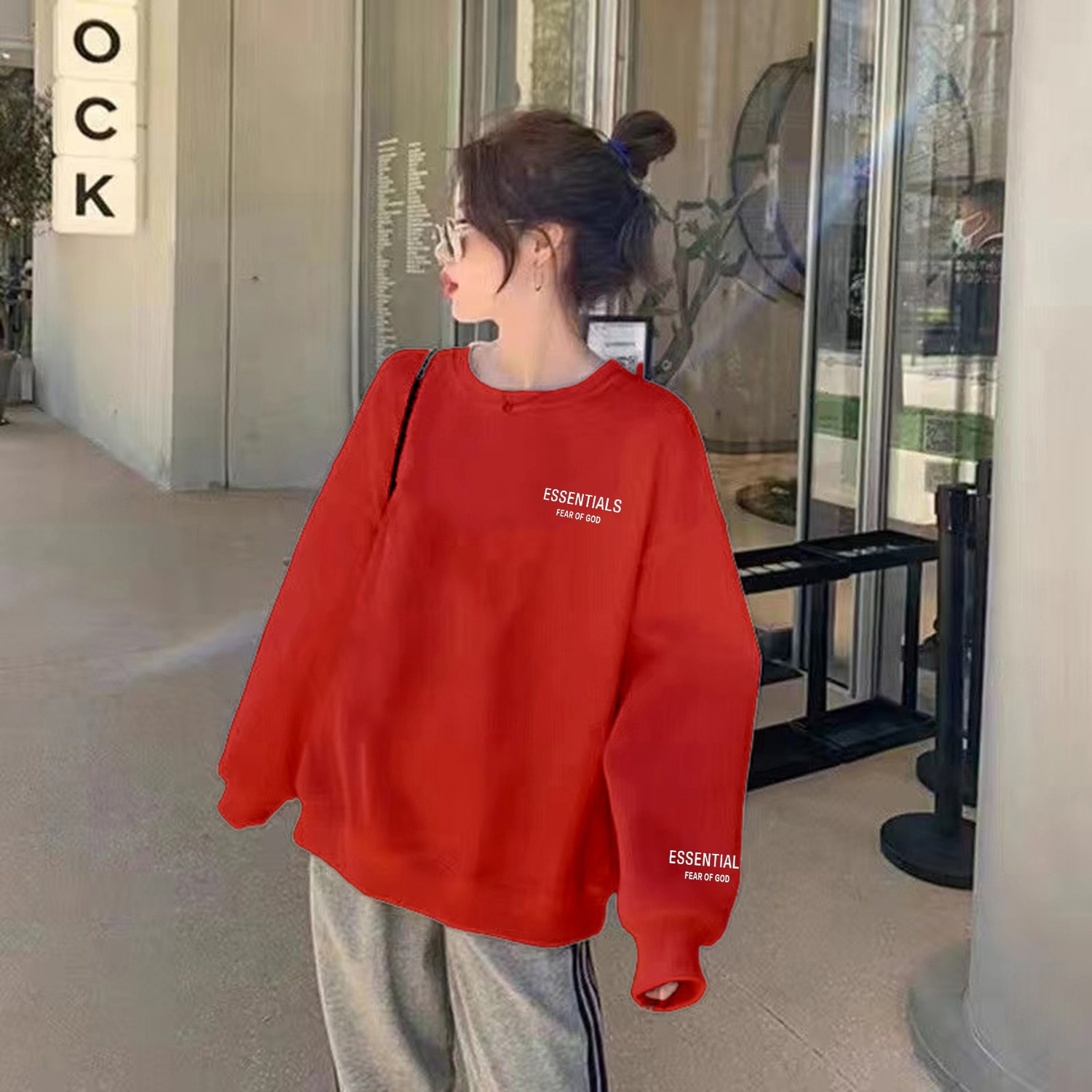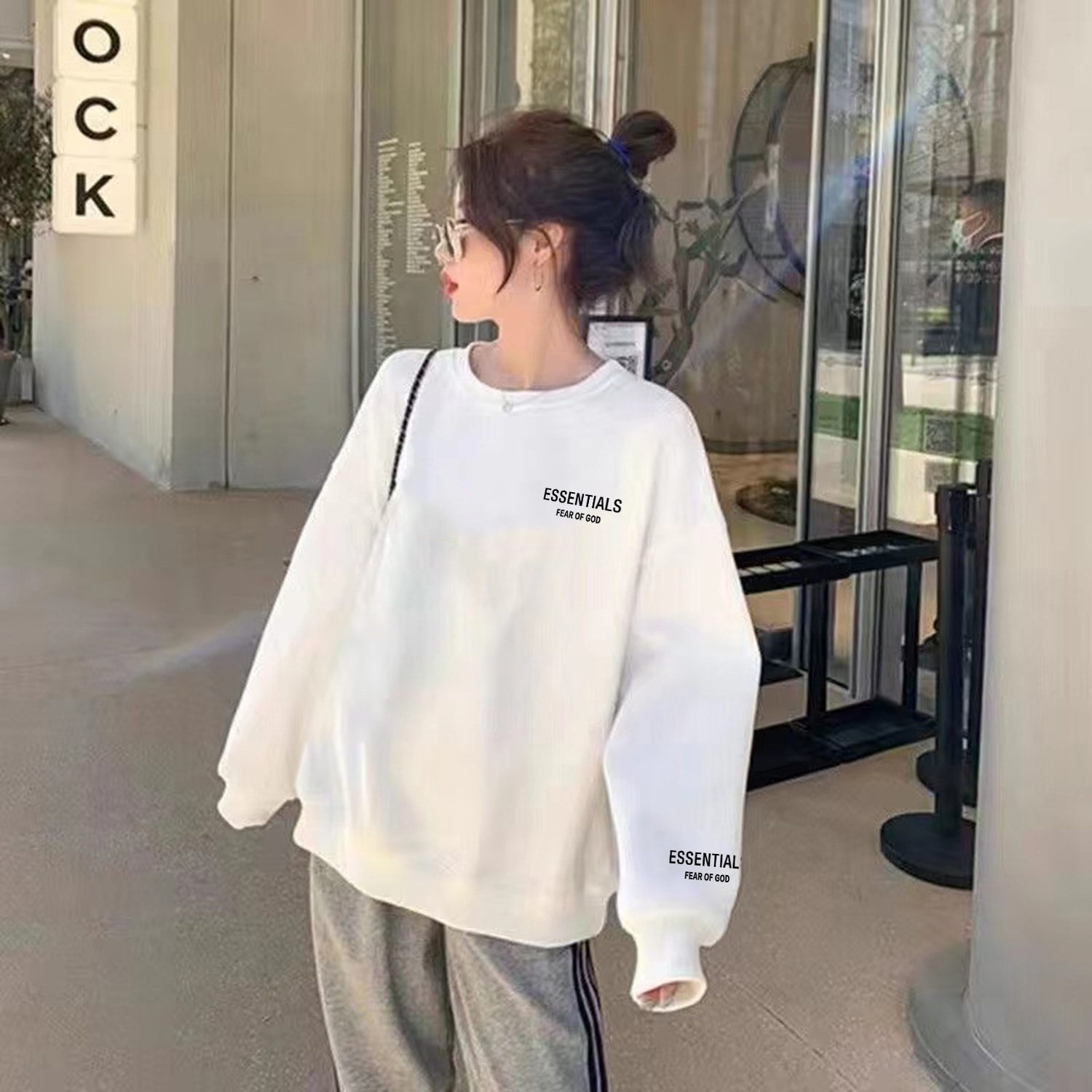 欧货圆领加绒加厚卫衣女2025秋冬新款杏色创意字母印花宽松外套潮