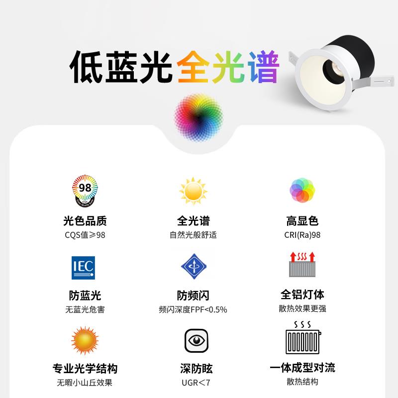 T92极柔光射灯cob嵌入式深防眩光全光谱护眼智能调光led天花灯
