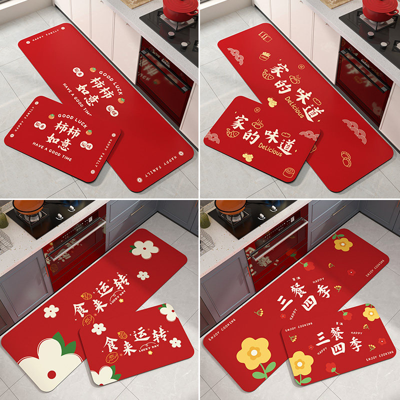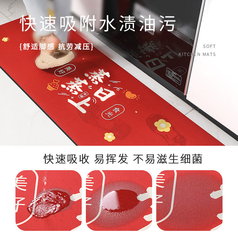 厨房地垫防滑防油软硅藻泥吸水脚垫2025新款红色免洗可擦防水地毯