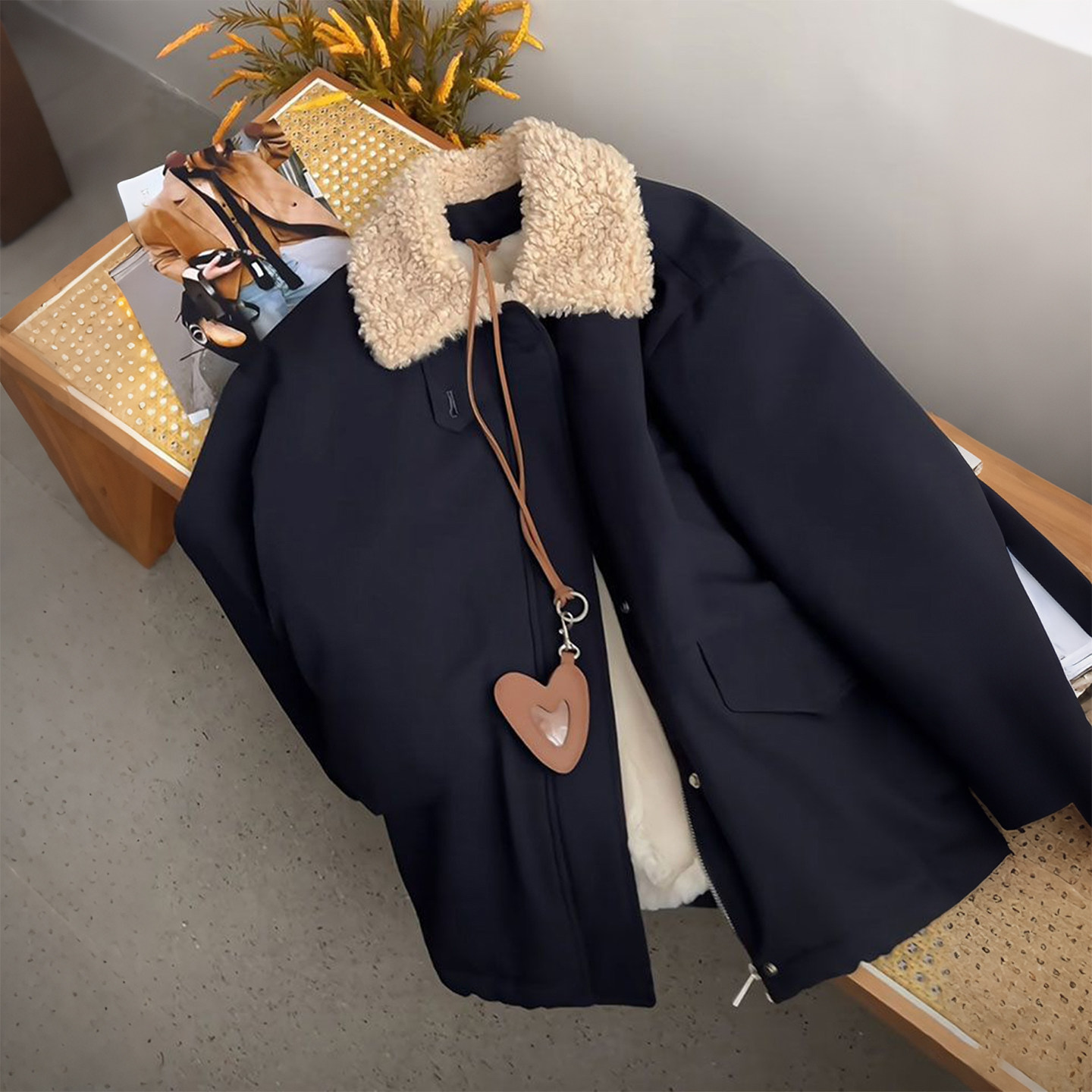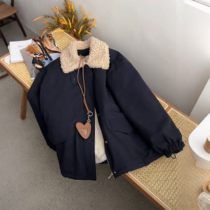 特大码女装胖mm羊羔毛领棉服女宽松减龄保暖加厚学院风棉衣外套潮