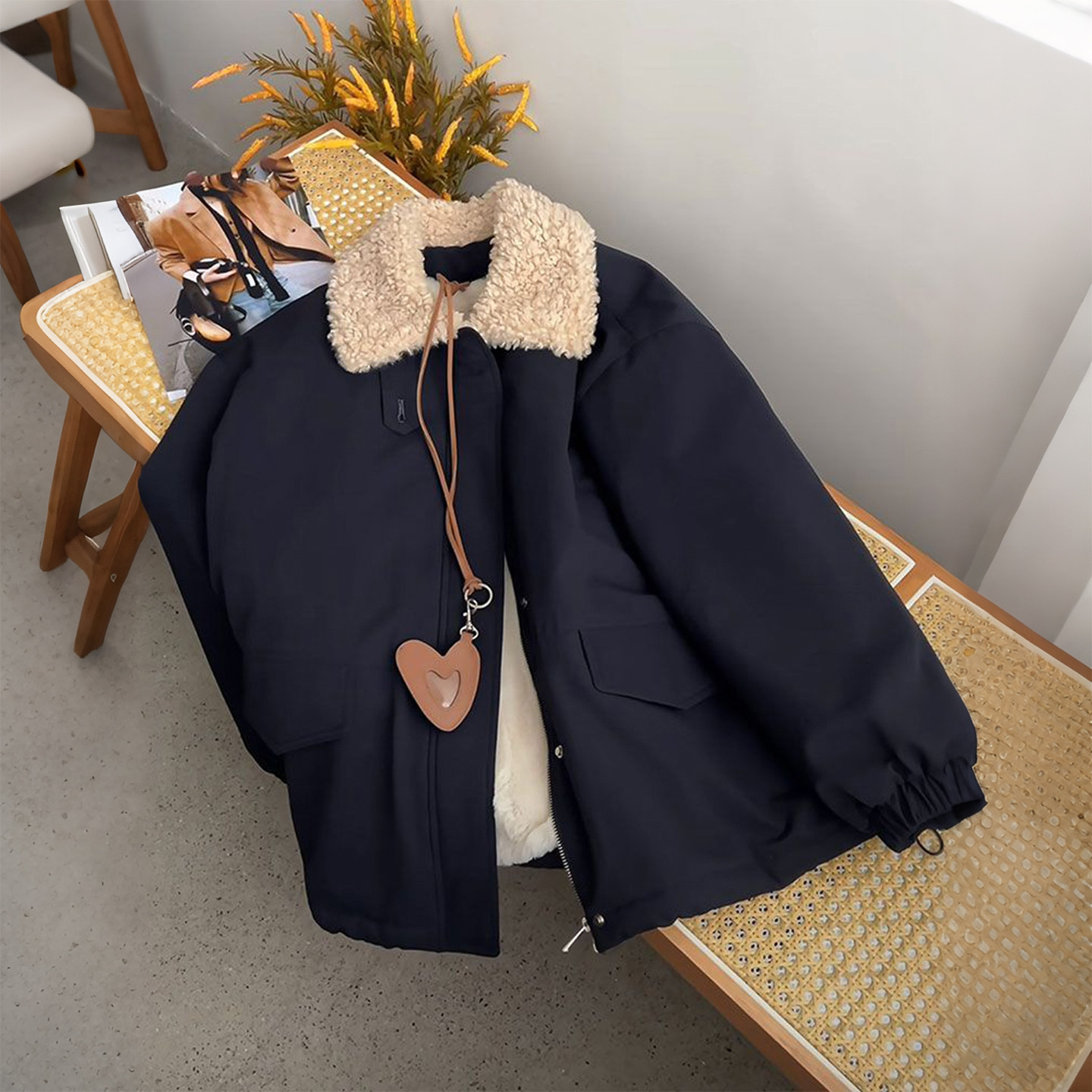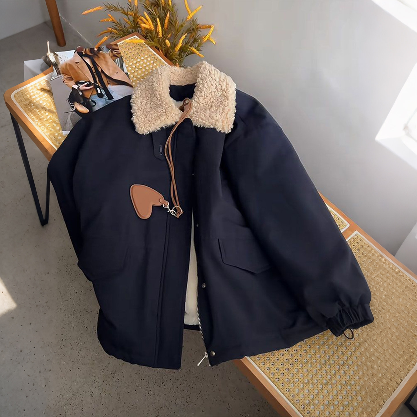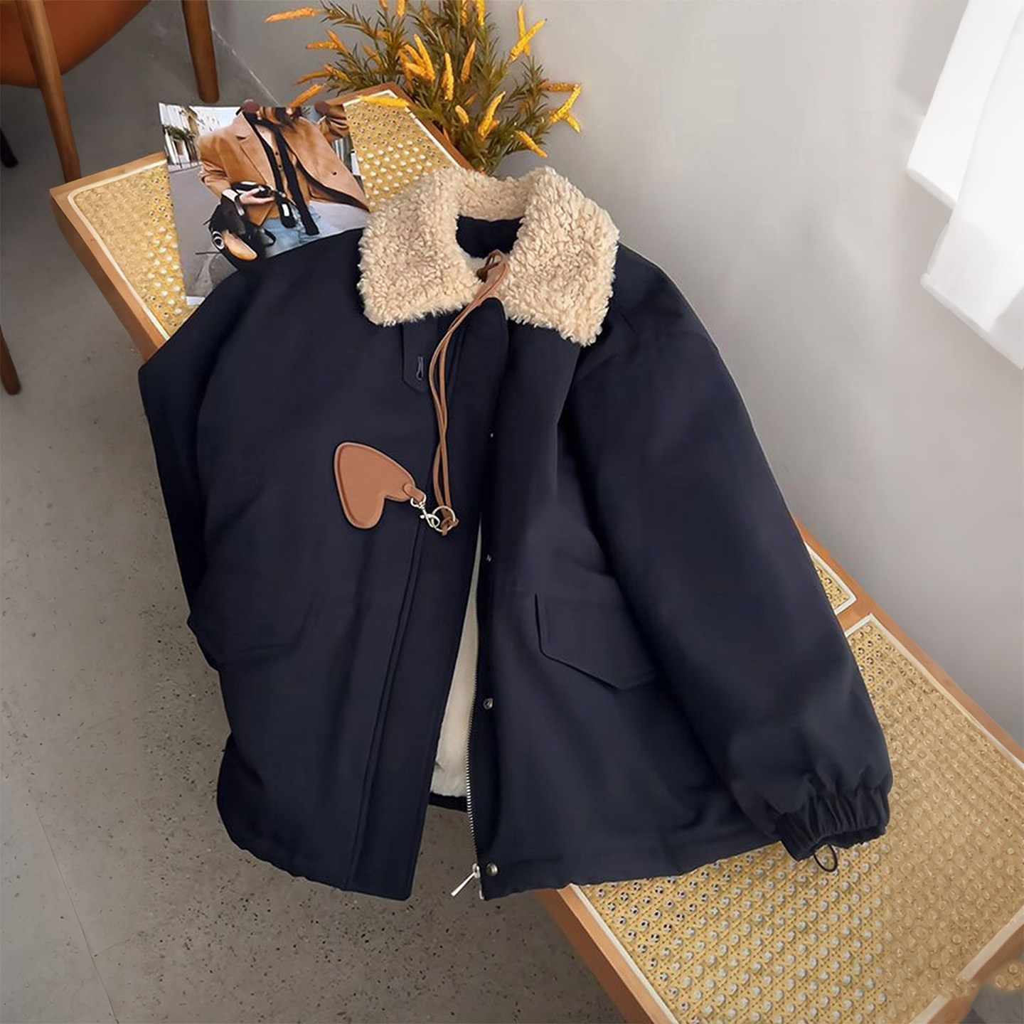 特大码女装羊羔毛领加厚保暖棉服