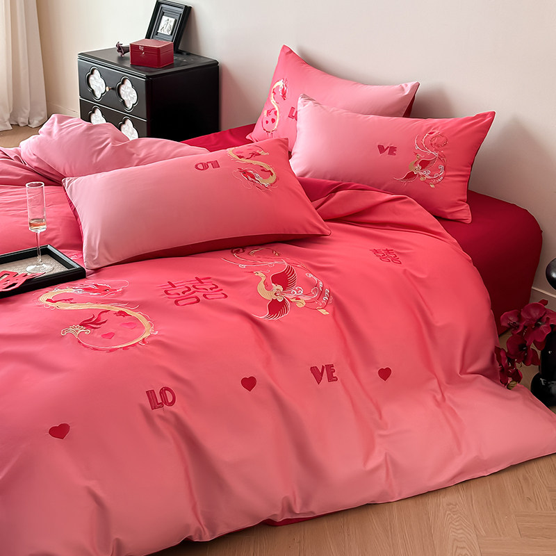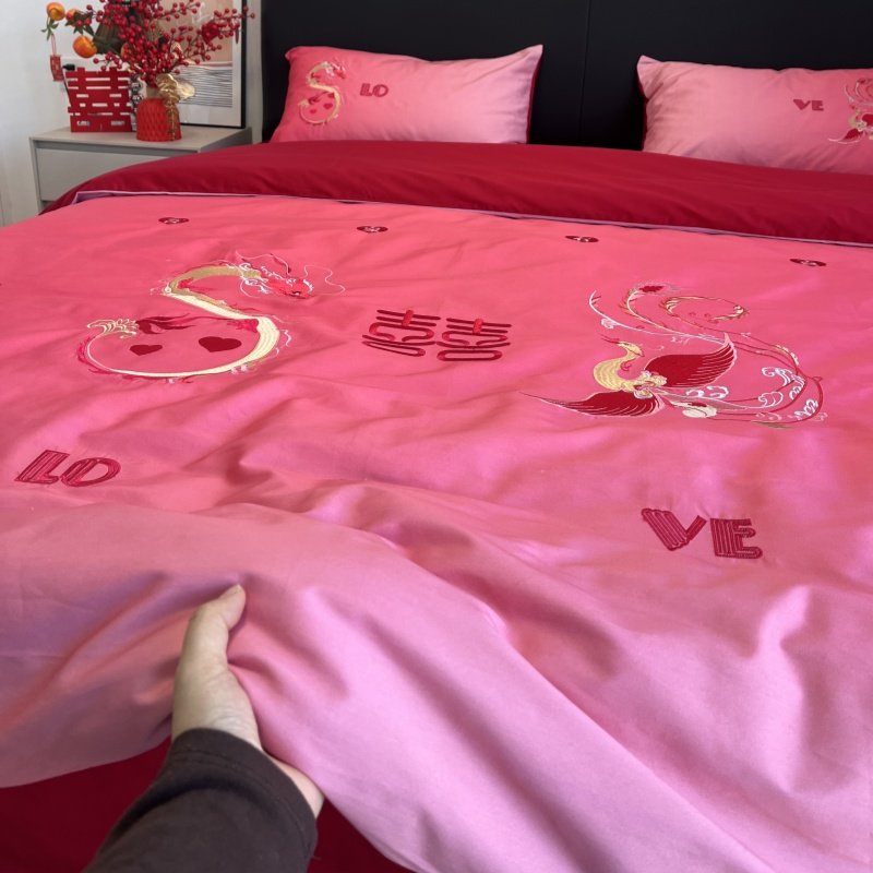 高档渐变色婚庆四件套2025新款喜被红色床单被套结婚床上用品婚房