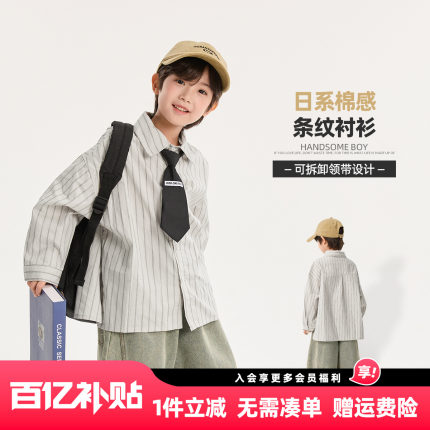 男童长袖衬衫春秋款2025秋装新款儿童中大童秋季条纹衬衣上衣外套